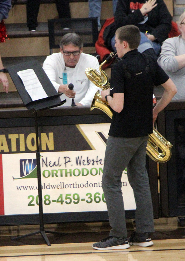 Spangled Banner on his saxophone prior to the Pirates State Tournament