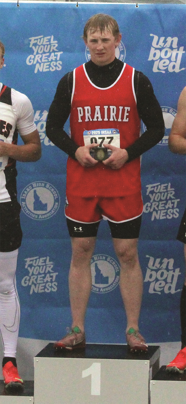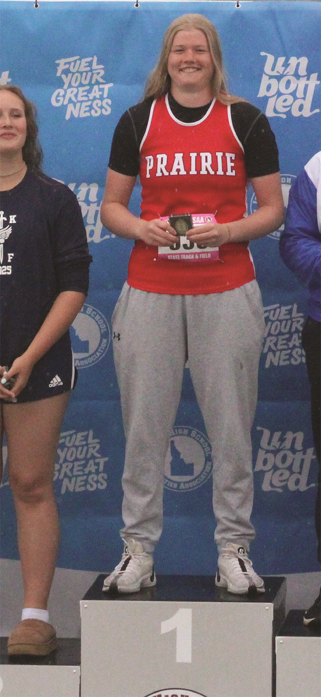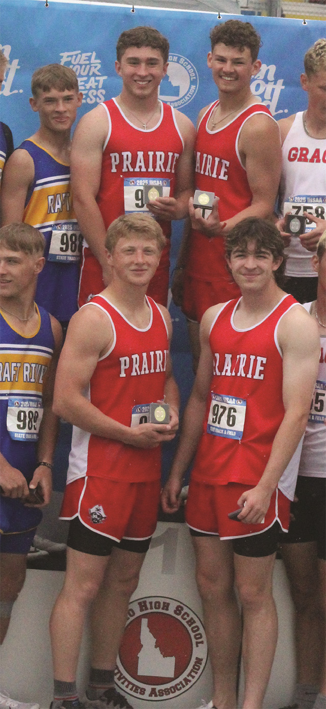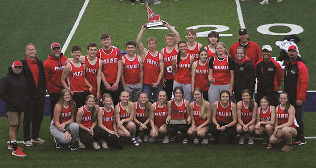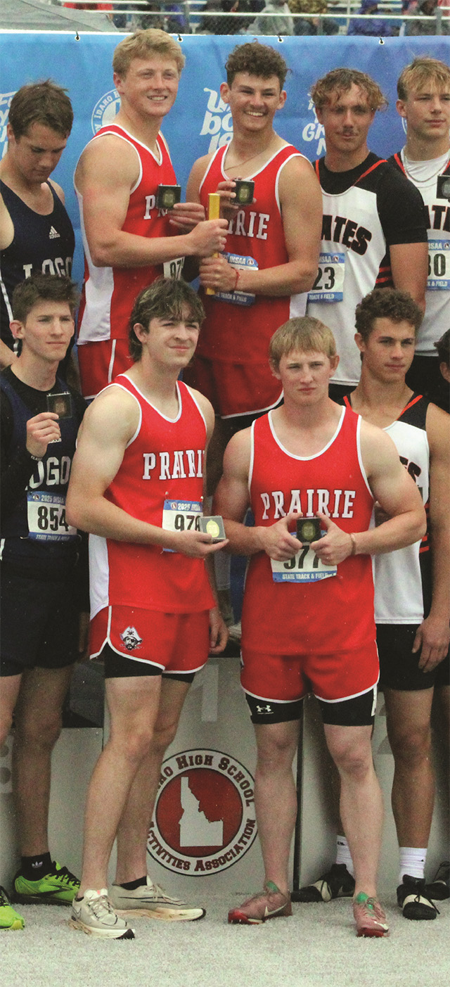 of the Chronicle. ![]() The Prairie track team came away from the State Track Meet with 6 first place finishes, many other medals and second place team trophies for both the boys and girls teams. Shown kneeling from left are Hailey Hanson, Macie Uhlenkott, Blake Uhlenkott, Mia Anderson, Sierra Oliver, Kennedy Riener, Aubree Rehder with the girls trophy, Avery Riener, Alli Rambo, Sydney Shears, Aubree Geis and Nadia Cash. Standing from left are coaches TT Cain, Matt Elven, head coach Ryan Hasselstrom, Cole Duclos, Phineas Fitch, Nate Forsmann, Peyton Stamper, Dylan Uhlenkott and Matt Wemhoff holding the boys trophy, Callie Mader, Briggs Rambo, McKenzie Hope, Ben Secrest, Sage Elven, and coaches Ellea Bruzas, Jason Rambo, Jack Secrest and Jarod Cash. ![]() Matt Wemhoff, Cole Duclos, Ben Secrest and Dylan Uhlenkott with their first place medals in the 4x100. ![]() Payton Stamper, Cole Duclos, Matt Wemhoff and Ben Secrest with their first place medals in the 4x200. ![]() Dylan Uhlenkott earned first place medals in the 100, 200 and 400 and broke the state meet record in the 400. ![]() Sage Elven made it 3 in a row with her first place finish in the girls discus competition.