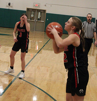 Jan. 10. ![]() Potlatch lost 69-14 the first time they played Prairie but this time they were down to just 6 players and were missing a pair of seniors that played back in November. Prairie outscored the Loggers 25-0 in the first quarter as Lexi Schumacher racked up 13 points while hitting 6 of 9 shots. Sage Elven added 6 points while Hailey Hanson and Kylie Schumacher scored 3 each. Prairie forced 17 turnovers in the opening quarter leading to a lot of easy transition baskets. In the second quarter they eased off on the defense. Kylie Schumacher scored a putback and Elven scored a pair of baskets to put Prairie up 31-0 before Potlatch finally dented the scoreboard with a basket at the 5:54 mark. Lexi Schumacher, Ellie Nuxoll and Elven each added a basket to make it 37-2 at the half. Prairie then scored the first 21 points of the third quarter making it a 27-0 run. Elven scored 6 in that 21-0 run with Lexi Schumacher adding 5 and Hanson 3. Kylie Schumacher, Aubree Rehder and Mia Anderson scored 2 each and Sydney Shears 1. Potlatch finally scored again with 2 free throws at the 43 second mark. Nuxoll and Lexi Schumacher then each scored a basket to make it 62-4 after 3 quarters. Hanson scored to open the fourth quarter, which was played with a running clock. Potlatch then scored their final points of the game at the 4:52 mark. Prairie then scored the final 14 points of the game. Kylie Schumacher scored 8 of those and Lexi Schumacher the other 6. Lexi Schumacher wound up with 28 points, which put her over 1000 points in her career. Elven scored 18 with Kylie Schumacher adding 15, Hanson 8, Nuxoll 4, Rehder and Anderson 2 each and Shears 1. Prairie doubled up Potlatch on the boards, 46-23. Elven had 9 to lead the Pirates with Kylie Schumacher adding 8 rebounds. Lexi Schumacher had a double-double as she had 11 steals in the game. Hanson added 8 steals. 9 different players had a steal out of the 11 that saw playing time. Shears had 4 assists while Lexi Schumacher had 3. 8 different players had at least 1 assist. Prairie was 36 for 77 from the field, 47%, and 2 for 4 at the line, 50%. Potlatch was 2 for 27 from the field, 7%, and 2 for 2 at the line. Prairie is now 9-1 on the season and 6-0 in league play. Prairie 25 12 25 16 -78 Potlatch 0 2 2 2 - 6 Prairie-L. Schumacher 13-25, 0-0, 28; Shears 0-1, 1-2, 1; Hanson 3-5, 0-0, 8; Elven 9-18, 0-0, 18; K. Schumacher 7-11, 1-2, 15; Nuxoll 2-4, 0-0, 4; Cash 0-2, 0-0 0; Rehder 1-5, 0-0, 2; Anderson 1-5, 0-0, 2; Schlader 0-1, 0-0, 0; Kalmbach 0-0, 0-0, 0. 3-pointers-Hanson 2, L. Schumacher 2. Potlatch-Sawyer 0-5, 0-0, 0; Vowels 1-7, 2-2, 4; Cessnan 0-6, 0-0, 0; Carlson 1-5, 0-0, 2; Zimms 0-6, 0-0, 0; Taylor 0-0, 0-0, 0. 3-pointers-none. ![]() Erica Schlader puts up a shot at Potlatch as Sydney Shears looks on. ![]() Kylie Schumacher puts up a shot at Potlatch. ![]() Lexi Schumacher shoots for 3 at Potlatch. ![]() Mia Anderson sites in a 3-point shot as Aubree Rehder looks on. UPDATED PIRATES GIRLS BASKETBALLSCHEDULE FOR 2024-25 JV games start at 6 p.m., varsity to follow unless indicated.
