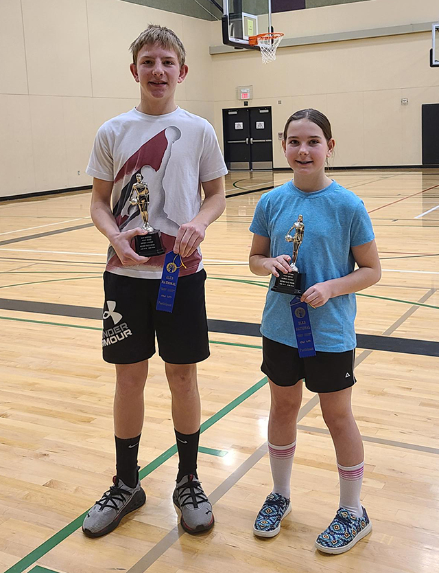 Hailey Frei and Easton Bruegeman competed in the District Elk's Hoop