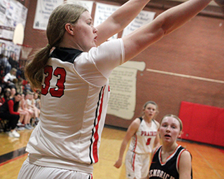 first quarter.Kendrick scored to open the second then Prairie scored 6 straight for a 22-9 lead. Kendrick then closed the first half with 7 straight points to make it 22-16 at the break. Prairie came out in the second half with 9 straight points to take a 15 point lead. Kylie Schumacher scored a lay-up then converted a 3-point play. Elven scored a lay-up then Kylie added a lay-up to finish the run. Kendrick’s first points of the second half came at the 3:46 mark. Shears banked a short shot in to answer. Another Kendrick score was answered by Kylie Schumacher. Kendrick scored again at the 1:57 mark then went scoreless for over 7 minutes. In that span Prairie scored 18 straight points to blow the game open and invoke the running clock. Prairie ended the third quarter with 6 straight as Kylie Schumacher, Beka Schumacher and Elven each scored a basket for a 41-21 lead. Shears scored to open the fourth quarter. Beka Schumacher converted a 3-point play. Shears hit a 3-pointer and then added a lay-up that gave Prairie a 30-point lead and turned on the running clock with 3:36 to play. Kylie Schumacher capped the run with a lay-up. Kendrick scored their only points of the fourth quarter on a 3 with 2:25 left. Prairie then got a basket each from Halee Rowland and Reagan Brannan. Kylie Schumacher had another double-double with 25 points and 13 rebounds. Shears was also in double figures with 11 points. Elven scored 9 while Beka Schumacher scored 6. Hanson, Rowland and Brannan scored 2 each. Prairie dominated the boards 55-19. Elven tied for the team lead with 13 rebounds while Beka Schumacher was also in double figures with 10. Kylie Schumacher had 4 steals and 4 assists. Hanson, Elven and Schlader each had 3 assists. Prairie was 26 for 66 from the field, 39%, and 3 for 12 at the line, 25%. Kendrick was 9 for 40 from the field, 23%, and 3 for 4 at the line, 75%. Prairie is now 11-4 on the season and 8-1 in league play. If they wind up tied for first with Lapwai, Prairie has the tiebreaker and will be the #1 seed into District. Prairie also won the JV game, which went just 2 quarters, 41-5. Prairie scored the first 17 points of the game. 10 of those were by Kennedy Riener. Faith Cash scored 4, Lillian Rehder 2 and Reagan Brannan 1. Kendrick scored their first points at the 1:19 mark. Alli Rambo then scored a pair of baskets to make it 21-2 at the end of the first quarter. Prairie then scored the first 8 points of the second quarter. Capri Hagen started the scoring. Kenly Forsmann followed with a midrange shot. Blake Uhlenkott scored a free throw. Hagen scored a free throw then Bekah Shears made a basket on an inbounds play. Hagen scored again to make it 31-2. Kendrick scored the Prairie ran off another 6 straight. Rambo, Hagen and Tori Shears each scored to make it 37-4. After a Kendrick free throw, Zoey Behler scored a pair of baskets to finish off the game. Riener led the scoring with 10 points. Hagen scored 7, Rambo 6, Behler and Cash 4 each, Rehder, Forsmann, Bekah Shears and Tori Shears 2 each and Brannan and Uhlenkott 1 each. Prairie had a 12-5 edge on the boards. Brannan led Prairie with 4 rebounds. Kennedy Riener had 4 steals while Tori Shears and Brannan had 3 each. Uhlenkott had 5 assists. Prairie was 18 for 29 from the field, 62%, and 5 for 10 at the line, 50%. Kendrick was 2 for 5 from the field, 40%, and 1 for 2 at the line, 50%. They only put up 5 shots because they committed 29 turnovers in 16 minutes of play. Prairie 16 6 19 16 -57 Kendrick 7 9 5 3 -24 Prairie-Shears 5-14, 0-0, 11; Hanson 1-5, 0-0, 2; Schlader 0-1, 0-0, 0; Elven 4-14, 0-0, 9; K. Schumacher 12-17, 1-7, 25; B. Schumacher 2-8, 2-4, 6; Rowland 1-3, 0-0, 2; Brannan 1-2, 0-0, 2; Rehder 0-0, 0-0, 0; Cash 0-1, 0-0, 0; K. Riener 0-0, 0-0, 0; Behler 0-0, 0-0, 0; A. Riener 0-1, 0-0, 0. 3-pointers-Elven, Shears. Kendrick-Heimgartner 1-9, 0-0, 3; Cowley 0-4, 0-0, 0; Anderson 4-9, 1-2, 10; Clemenhagen 0-0, 0-0, 0; Boyer 3-10, 0-0, 6; Hoffman 0-6, 2-2, 2; Johnstun 1-2, 0-0, 3; Manfull 0-0, 0-0, 0. 3-pointers-Anderson, Johnstun. ![]() Kylie Schumacher scores a lay-up against Kendrick. ![]() Reagan Brannan plays defense against Kendrick's Hali Anderson. ![]() Sage Elven shoots from the corner against Kendrick. Also shown is Sydney Shears. ![]() Sydney Shears goes for a lay-up against Kendrick. PIRATES GIRLS BASKETBALL SCHEDULE FOR 2025-26
