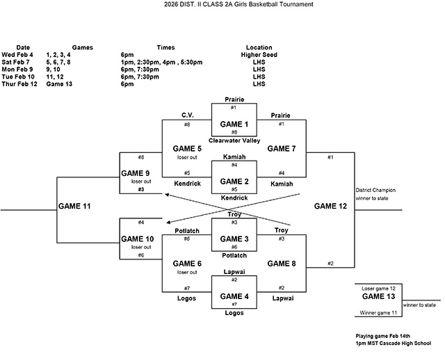 4. Prairie plays Kamiah at 4 p.m. on Saturday at Lewiston High School.