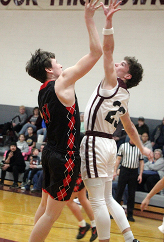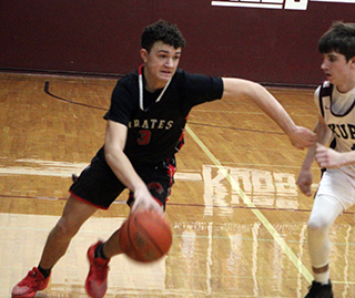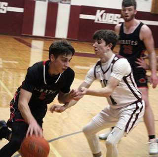 The Prairie Pirates won a pair of league road games this past week. On Wednesday, Jan. 28, they traveled to Kamiah and won 47-38 over the Kubs. On Thursday, Jan. 29, they traveled to Moscow and beat Logos 67-44. At Kamiah The game at Kamiah was much closer than the one at Prairie where the Pirates won by 33.![]() Riley Shears got the scoring start with a 3-pointer just 14 seconds into the game. After a Kamiah free throw, Prairie scored 6 straight. Nate Forsmann scored a pair of baskets and Shears hit a turn-around shot to make it 9-1. After a 3 by Kamiah’s Lawson Landmark, Shears cored a putback. After another basket by Kamiah, Shears made a free throw that made it 12-6 at the end of the first quarter. Kamiah scored to open the second and Shears answered with a basket. After a Kamiah free throw, Patrick scored a lay-up on a lob pass from Chase VonBargen. Max Rehder then banked in a 3 and Schlader made 2 free throws for a 21-9 lead with 3:07 left in the half. Kamiah fought their way back into the game by closing the half with a 2-9 run. Phil Schwartz scored for Prairie after a steal. It was 23-16 at the half. Kamiah then opened the second half with 2 free throws to cut their deficit to 5 at 23-18. Prairie answered with 9 straight points. Schlader scored a pair of baskets. Shears scored a lay-up and Rehder hit for 3 on an inbounds play to make it 32-18. Kamiah scored a pir of baskets but a 3 by Shears pushed the lead back to 13. A basket by Kamiah made it 35-24 at the end of the third quarter. Kamiah tried to rally in the fourth but Prairie was able to score enough to hold them off. Kamiah opened the fourth quarter with a basket but Prairie answered with a basket by Kade Quintal and a 3 by Schwartz. Landmark scored 2 free throws and a 3 to cut the lead to 9 at 40-31. Forsmann answered with a 3-point play. Kamiah made 3 of 4 at the line to again cut the deficit to 9. Prairie answered with a basket each by Shears and Forsmann to make it 47-34 with 1:52 left. Kamiah then scored the final 4 points to make the final margin 9 points. Shears led all scorers with 17 points while Forsmann scored 9. Schlader scored 8, Redher 6, Schwartz 5 and Quintal 2. Prairie had a 33-29 edge on the boards led by Schlader who had 12 rebounds. Schwartz had 3 steals and 6 assists. Prairie was 19 for 47 from the field, 40%, and 4 for 7 at the line, 57%. Kamiah was 11 for 40 from the field, 28%, and 13 for 16 at the line, 81%. Kamiah won the JV game 46-47. Prairie 12 11 12 12 -47 Kamiah 6 10 8 14 -38 Prairie-Shears 7-14, 1-2, 17; VonBargen 0-2, 0-0, 0; Schwartz 2-3, 0-0, 5; Schlader 3-10, 2-2, 8; Forsmann 4-8, 1-3, 9; Quintal 1-3, 0-0, 2; Rehder 2-7, 0-0, 6. 3-pointers-Shears 2, Rehder 2, Schwartz. Kamiah-Roberts 2-10, 0-0, 5; Oatman 3-7, 3-4, 9; Skinner 0-0, 2-2, 2; Landmark 3-14, 7-8, 15; Keen 0-4, 1-2, 1; Wimer 3-5, 0-0, 6; Cox 0-1, 0-0, 0; Allen 0-0, 0-0, 0. 3-pointers-Landmark 2, Roberts. At Logos In the game at Logos, Prairie led 10-4 after 1 period and 25-11 at the half. They led 44-24 after 3 quarters.Shears led the Pirates inscoring with 15 points while Forsmann scored 12 and Rehder and Schwartz added 10 points each. Quintal and VonBargen scored 7 each while Schlader scored 6. Prairie is now 11-4 on the season and 8-1 in league play. Prairie also won the JV game 68-60. We tried to watch the game on NFHS but it wouldn’t show up at all when it was live and after it was over a thumbnail showed up but it didn’t connect to anything. Prairie 10 15 19 23 -67 Logos 4 7 13 24 -48 Prairie-Schwartz 3, 2-2, 10; Quintal 2, 3-4, 7; Shears 4, 5-6, 15; VonBargen 3, 1-1, 7; Rehder 4, 0-0, 10; Schlader 3, 0-2, 6; Forsmann 4, 4-6, 12. 3-pointers-Shears2, Schwartz 2, Rehder 2. Logos-Monjure 8, 6-6, 22; Rench 2, 2-2, 7; Driskill 0, 0-0, 0; Grieser 0, 0-0, 0; R. Grauke 1, 2-2, 4; Shaw 0, 0-2, 0; Unger 2, 0-0, 4; M. Grauke 0, 0-0, 0; Haney 0, 6-6, 6; Jankovic 1, 0-2, 2; Holloway 1, 1-4, 3. 3-pointers-Rench. ![]() Chase VonBargen drives past a Kamiah defender. Also shown is Nate Forsmann. ![]() Kade Quintal handles the ball at Kamiah. ![]() Max Rehder goes up for a shot at Kamiah. ![]() Patrick Schlader with the ball at Kamiah.