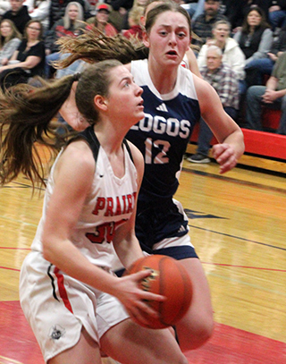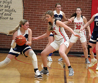 Krogh to make it 8-5 after 1 quarter.Kamiah tied the score with a 3 to open the second quarter. Prairie then scored 8 straight for a 16-8 lead. Kylie Schumacher a putback. Shears scored a basket. Kylie connected from midrange and Elven banked in a short shot. Kamiah then answered back with 7 straight points to pull within 1. Kylie scored a free throw to end the half with Prairie up by just 2 at 17-15. The third quarter was a disaster for Prairie. Kamiah tied it with a basket to open the third quarter. Elven hit a short bank shot to put Prairie back on top at the 5:58 mark. That turned out to be Prairie’s only points of the quarter. Kamiah took the lead with a 3 and added a basket to take a 19-22 lead at the end of the third quarter. Kamiah scored again to open the fourth quarter for a 19-24 lead. Shears drove across the free throw lane and down the right side of the key for a lay-up to break the scoring drought of 8:38. Kylie Schumacher followed with a drive for a lay-up to get Prairie back within 1. Kamiah scored a couple of free throws to go up by 3 at 23-26. Prairie then scored 8 straight points to retake the lead. Beka Schumacher scored a free throw. Kylie Schumacher hit a midrange shot to tie it at 26. Beka made a free throw for the lead and then added one of her turnaround bank shots. Shears scored on a full court drive after making a defensive rebound for a 31-26 lead. Kamiah broke their scoring drought with 2 free throws to get back within 3. Kylie Schumacher finished off the game with a basket and a free throw for a 6-point win. Kylie Schumacher provided the bulk of the Pirate offense with 18 points. Shears and Elven scored 6 each and Beka Schumacher scored 4. Prairie had a 49-40 advantage on the boards. Kylie Schumacher also had a huge day on the boards with 20 rebounds. Shears had 6 steals and 2 assists while Kylie Schumacher had 3 steals and 2 assists. Prairie was 15 for 54 from the field, 28%, and 4 for 17 at the line, 24%. Kamiah was 9 for 53 from the field, 17%, and 8 for 17 at the line, 47%. Prairie finishes their regular season with a record of 16-4 overall and 13-1 in league play. Prairie 8 9 2 15 -34 Kamiah 5 10 7 6 -28 Prairie-Shears 3-7, 0-0, 6; Hanson 0-3, 0-0, 0; Schlader 0-2, 0-0, 0; Elven 3-14, 0-0, 6; K. Schumacher 8-18, 2-11, 18; B. Schumacher 1-10, 2-6, 4; Brannan 0-0, 0-0, 0. 3-pointers-none. Kamiah-Krogh 4-15, 6-11, 14; Moses 0-11, 1-2, 1; Wilkins 1-11, 0-2, 2; E. Puckett 1-6, 0-0, 2; A. Puckett 2-7, 1-2, 6; Davis 1-3, 0-0, 3; Wisdom 0-0, 0-0, 0. 3-pointers-A. Puckett, Davis. ![]() Beka Schumacher and Reagan Brannan play defense against Logos. ![]() Kylie Schumacher looks to shoot for 3 against Logos. ![]() Reagan Brannan pulls up for a lay-up against Logos. ![]() Sage Elven scores a lay-up after a Logos turnover. ![]() Sydney Schumacher handles the ball against Logos. PIRATES GIRLS BASKETBALL SCHEDULE FOR 2025-26