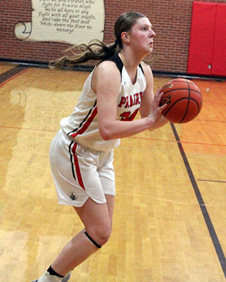 Lady Pirates win twice The Prairie Lady Pirates finished off their regular season with a pair of league wins. On Tuesday, Jan. 27, they celebrated Senior Night with a 58-21 win over Logos at Cottonwood. On Thursday, Jan. 29, they traveled to Kamiah where the Kubs played Prairie tough as the Pirates had to come from behind for a 34-28 win. That gave them a first place tie with Lapwai for the league championship at 13-1. Prairie will be the #1 seed at District due to a tie-breaker. Vs. Logos On Senior Night Prairie honored 4 seniors: Sydney Shears, Kylie Schumacher, Sage Elven and Hailey Hanson. ![]() In the game, Logos came out with intensity on defense and Prairie didn’t score as well as they had at Logos a week earlier. Kylie Schumacher scored the first points of the game on a putback. Logos tied it then Hanson hit a 3 that put Prairie ahead for good. Shears followed with a basket to make it 7-2 at the 2:47 mark. After a Logos baskets, Beka Schumacher came off the bench to provide an offensive spark. Shears scored a basket and 2 free throws for an 11-4 lead at the end of the quarter. She then scored a putback to open the second quarter scoring. A lay-up by Kylie Schumacher made it 15-4. Two Logos free throws were answered with 2 by Beka Schumacher. Another Logos free throw was answered with a 3-point play by Elven who was fouled on a putback. Logos scored a free throw with 3:07 left in the half to make it 20-8. They wouldn’t score again until the 1:28 mark of the third quarter. Prairie ended the half with 13 straight points. Beka Schumacher scored a pair of baskets while Elven, Kylie Schumacher, Reagan Brannan and Halee Rowland scored 2 each and Erica Schlader scored a free throw as Prairie took a 33-8 halftime lead. Prairie then scored the first 16 points of the second after to complete a 29-0 run. Schlader and Kylie Schumacher each scored 4 points in that run while Elven, Hanson, Shears and Beka Schumacher each scored 2. After Logos finally scored a free throw to break the run, Brannan hit a 3 to make it 52-9. Logos scored at the buzzer to make it 52-11 after 3 quarters. In the running clock fourth quarter, Logos outscored Prairie 6-10. Brannan scored 2 baskets and Rowland 1 for Prairie in the quarter. Beka Schumacher led the scoring with 14 points. Kylie Schumacher scored 10 while Brannan scored 9. Hanson and Schlader scored 5 each while Shears and Rowland scored 4 each. Logos had a 26-32 edge on the boards. Elven led Prairie with 7 rebounds. Hanson had 8 steals while Elven had 6. Shears had 5 steals and 3 assists. Prairie was 23 for 53 from the field, 43%, and 10 for 17 at the line, 59%. Logos was 8 for 25 from the field, 32%, and 5 for 16 at the line, 31%. In the JV game Prairie won 26-0 in a 2-quarter game. Prairie scored 13 points in each quarter. Faith Cash and Reagan Brannan scored 6 points each to lead the team. Alli Rambo scored 4. Capri Hagen scored 3. Kennedy Riener, Zoey Behler and Lillian Rehder scored 2 each. Blake Uhlenkott scored 1. Prairie had a 20 to 19 edge on the boards. Rambo and Brannan had 5 each to lead the team. Hagen, Behler and Cash had 3 steals. 7 different players had 1 assist each. Prairie was 10 for 40 from the field, 25% and 6 for 10 at the line, 60%. Logos was 0 for 9 from the field and did not attempt a free throw. Prairie 11 22 19 6 -58 Logos 4 4 3 10 -21 Prairie-Shears 2-8, 0-0, 4; Hanson 1-3, 2-4, 5; Schlader 2-3, 1-2, 5; Elven 3-10, 1-1, 7; K. Schumacher 4-10, 2-2, 10; B. Schumacher 5-8, 4-6, 14; Brannan 4-8, 0-2, 9; Rowland 2-2, 0-0, 4; Rehder 0-1, 0-0, 0; Cash 0-0, 0-0, 0; K. Riener 0-0, 0-0, 0; Behler 0-0, 0-0, 0; A. Riener 0-0, 0-0, 0. 3-pointers-Hanson, Brannan. Logos-Driskill 1-5, 2-6, 4; Covington 3-5, 1-2, 7; Wilson 0-5, 0-2, 0; Bentley 0-2, 0-0, 0; Spillman 4-5, 1-2, 9; Doane 0-2, 1-2, 1; Snell 0-1, 0-2, 0; Shannon 0-0, 0-0, 0. 3-pointers-none. At Kamiah Prairie struggled in their