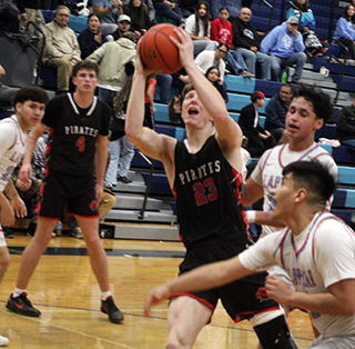 gave the Pirates a lead after 3 quarters. This time the game was close throughout as the biggest lead either team had was 8 points.Forsmann got Prairie started with a lay-up and then a 3 for a 5-0 lead. Kendrick answered with a 3 but Forsmann scored another lay-up. After a Kendrick basket, Shears scored to make it 9-5. Kendrick then took their first lead with a 0-5 run but Schlader scored to put the Pirates back on top at 11-10. Kendrick then made a pair of 3 for an 11-15 lead. Gehring scored to cut it to 2 but Kendrick answered for a 13-17 lead after the first period. Forsmann scored to make it a 2-point game to start the second quarter but Kendrick came back with 2 baskets for their biggest lead of the game at 15-21. Prairie came right back with Schwartz, Gehring and Schlader all connecting from 3-point range for a 9-0 run and a 24-21 lead. Kendrick scored to get back within 1 but Forsmann scored on a tip-in to give Prairie a 26-23 lead at the half. Kendrick opened the third quarter scoring but Schlader scored a pair of lay-ups and Shears hit a 3 to give Prairie their biggest lead of the game at 33-25. A Kendrick score was answered by Forsmann as Prairie led 35-27 with 3:40 left in the third quarter. Kendrick then scored 8 straight to tie the game. The tying basket was a 3-pointer at the third quarter buzzer making it 35-35. Schwartz opened the fourth quarter with a 3 and Shears followed with a basket for a 40-35 lead. Kendrick scored a basket and Shears answered to make it 42-27 with 4:33 left. Kendrick then took back the lead with a 0-7 run that made it 42-44 with 2:55 to play. Shears made 2 of 4 free throws to tie it with 1:56 to play. Schlader then hit a 3 to give Prairie the lead for good at 47-44. Schwartz and Shears followed with 2 free throw each to put Prairie up 51-44 with 34 seconds to play. A 3 by Kendrick with 25 seconds left and a putback with 14 seconds left cut the lead to 51-49. Forsmann then scored the clinching basket with 4 seconds left to give Prairie the win. The win left the two team with identical 10-1 league records with 1 league game left to play. Prairie plays Potlatch and Kendrick plays Lapwai, both on Friday, Feb. 13. Forsmann led the Pirates in scoring with 15 points while Shears scored 13, Schlader 12, Schwartz 8 and Gehring 5. Prairie had a 24-16 advantage on the boards led by Schlader with 8 and Forsmann with 7. Schlader and Gehring each had 3 steals and 4 assists. Schwartz led the Pirates with 5 assists. Prairie was 20 for 36 from the field, 56%, and 6 for 8 at the line, 75%. Kendrick was 20 for 42 from the field, 48%, and 3 for 5 at the line, 60%. Prairie is now 10-1 in league and 13-5 overall. Kendrick won the JV game 41-51. Prairie fell behind 2-8 at the start but 5 straight points by Forsmann cut the deficit to 1 at 7-8. Kendrick then scored 8 straight to take a 7-16 lead at the end of the first quarter. Kendrick hit a 3 to open the second quarter for a 12-point lead. Prairie then scored 12 straight points to tie it at 19-19. Kade Quintal started the run with a 3. Warren stole the ball and scored. Labrum scored a lay-up. Rehder scored from 3 and Quintal tied it after a steal by Rehder. Kendrick responded with a 2-8 run to take a 21-27 lead at the half. Forsmann scored Prairie’s basket in that run. Forsmann opened the second half with a basket but Kendrick then scored a pair of baskets. A lay-up by Forsmann and a 3 by Warren cut the deficit to 3 at 28-31. Kendrick then ended the third quarter with 7 straight to take a 28-38 lead. Prairie opened the fourth quarter with 9 straight points. Warren scored 3 lay-ups and Forsmann added a 3 to make it 37-38 with 5:10 to play. Kendrick then outscored Prairie 4-13 the rest of the way. Labrum and Warren each scored a basket for Prairie. Forsmann wound up with 14 points to lead the JV’s while Warren scored 13. Quintal scored 5, Labrum 4, Rehder 3 and Fitch 2. Kendrick had a 21-28 rebounding edge. Forsmann led Prairie with 8 rebounds. Warren had 4 steal while Rehder had 3 steals and 8 assists. Prairie was 18 for 45 from the field, 40%, and 1 for 4 at the line, 25%. Kendrick was 20 for 42 from the field, 48%, and 5 for 8 at the line, 63%. Kendrick also won the C game by a score of 29-52. Prairie 13 13 9 18 -53 Kendrick 17 6 12 14 -49 Prairie-Gehring 2-6, 0-0, 5; Shears 4-10, 4-6, 13; Schwartz 2-3, 2-2, 8; Schlader 5-7, 0-0, 12; Forsmann 7-9, 0-0, 15; VonBargen 0-1, 0-0, 0. 3-pointers-Schlader 2, Schwartz 2, Gehring, Shears, Forsmann. Kendrick0M. Kirkland 3-6, 2-2, 8; Silflow 2-5, 0-0, 5; Roetcisoender 6-12, 1-1, 17; Tweit 7-12, 0-2, 14; H. Kirkland 2-6, 0-0, 5; Morgan 0-1, 0-0, 0. 3-pointers-Roetcisoender 4, Silflow, H. Kirkland. ![]() Max Rehder after putting up a shot at Lapwai. ![]() Patrick Schlader puts up a shot at Lapwai. Also shown is Riley Shears. ![]() Levi Gehring brings the ball downcourt at Kendrick. ![]() Riley Shears puts up a shot at Kendrick. ![]()