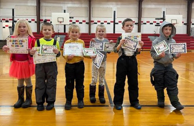 Top 2nd grade AR readers from left are: Kylee Bixby, Rebecca Riener, Jackson Ross, and Aubrey Westhoff. Photo by Jon Rehder. Click