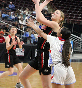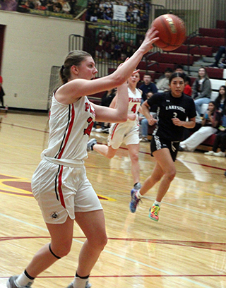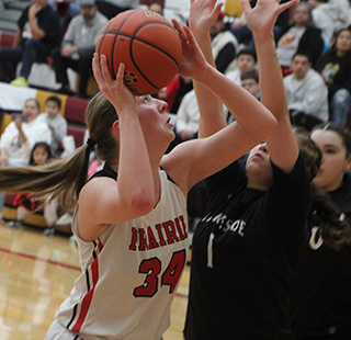 State. Prairie jumped out to a 6-0 lead as Kylie Schumacher scored 2 baskets and Hailey Hanson 1. Lakeside got on the board with a basket but Prairie answered with a basket by Sage Elven. After another Lakeside basket. Prairie scored 6 straight points all by Kylie Schumacher. Shear was 2 for 4 at the line and added a pair of lay-ups to make it 14-4. Lakeside scored a lay-up and 2 free throws before Kylie Schumacher ended the first quarter scoring with a putback that made it 16-8. Lakeside went 3 for 4 at the line to open the second quarter then Prairie scored 5 straight points. Kylie Schumacher had a putback, Elven a free throw and Kylie a lay-up to make it a double digit lead at 21-11. A 3 by Lakeside was answered with a putback and a lay-up by Kylie. After a Lakeside baskets, Prairie scored the final 5 points of the half. Sydney Shears hit a 3 from the top of the key after an offensive board by Elven and Kylie Schumacher then added a lay-up for a 30-16 halftime lead. Hanson opened the second halfscoring with a 3 and Lakeside answered with 2 free throws. Kylie Schumacher answered with a lay-up. Lakeside scored a basket and Shears made a free throw. Lakeside hit a 3 and Kylie answered with a lay-up. Lakeside then scored 2 free throws and a basket to get within 11 at 38-27. Kylie Schumacher scored a putback to end the third quarter with Prairie up by 13 at 40-27. In the fourth prairie scored the first 7 points. Hanson and Elven scored lay-ups then Elven hit a 3 from the corner on an inbounds play to make it 47-27. Lakeside scored a 3 and a 2 to get back within 15 but a free throw by Hanson, a lay-up by Kylie Schumacher and a 3 by Elven made it 53-32 with 1:40 to play. Lakeside then scored the game’s final points on 2 free throws. Kylie Schumacher had 30 points and 13 rebounds for a double-double. Elven also had a double-double with 11 points and 10 rebounds. Hanson scored 8 and Shears 4. Prairie dominated the boards 56-24. Nearly hitting double figures on the boards was Hanson with 9. Shears had 5 steals while Elven had 4. Elven and Hanson each had 5 assists. Prairie was 22 for 61 from the field, 36%, and 5 for 14 at the line, 36%. Lakeside was 10 for 47 from the field, 21% and 11 for 12 at the line, 92%. Prairie 16 14 10 13 -53 Lakeside 8 8 11 7 -34 Prairie-Shears 1-7, 1-4, 4; Hanson 3-14, 1-6, 8; Schlader 0-3, 0-0, 0; Elven 4-10, 1-2, 11; K. Schumacher 14-21, 2-4, 30; B. Schumacher 0-3, 0-0, 0; Brannan 0-0, 0-0, 0; Rowland 0-1, 0-0, 0; Rehder 0-0, 0-0, 0; K. Riener 0-1, 0-0, 0; Cash 0-1, 0-0, 0. 3-pointers-Elven 2, Hanson, Shears. Lakeside-Pluff 2-6, 0-0, 5; Wolfe 3-19, 6-6, 13; SiJohn 2-9, 3-4, 7; Peone 0-5, 0-0, 0; Lambert 3-3, 2-2, 9; Leo 0-2, 0-0, 0; Gorr 0-2, 0-0, 0; Thompson 0-0, 0-0, 0; Ortivez 0-0, 0-0, 0; Stensgar 0-0, 0-0, 0. 3-pointers-Lambert, Pluff, Wolfe. Vs. Butte County District 5-6 champion