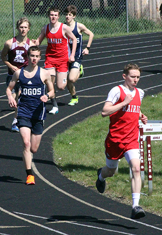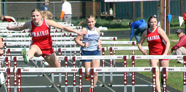Uhlenkott wins 3 events at Kamiah Dylan Uhlenkott won all 3 sprints at the Kamiah Invitational Saturday, April 5, while Sydney Shears won both the 200 and 800. ![]() Uhlenkott won the 100 meter dash in 11.38, the 200 in 22.96 and the 400 in 50.69. Shears won the 200 in 27.51 and the 800 in 2:23.47. She was also 4th in the 100 in 13.49. Also winning an event was Sage Elven in the discus with a mark of 138’2”. She was also second in the shot put at 39’7” and third in the javelin at 90’4”. Her shot put mark is just 6½ inches shy of the school record. Prairie also won a pair of relays. The boys 4x100 relay team of Cole Duclos, Matt Wemhoff, Ben Secrest and Uhlenkott won with a time of 44.97. Meanwhile the girls 4x200 team of Aubree Rehder, Avery Riener, Lillian Rehder and Aubree Geis won in 1:55.24. They edged out the team of McKenzie Hope, Reagan Brannan, Breanne Schwartz and Lacey Schwartz that placed second in 1:59.67. Other girls results: Hailey Hanson was 2nd in the javelin at 94’0”, 4th in the shot put at 31’1” and 5th in the discus at 103’3”. Mia Anderson was 2nd in the 300 hurdles in 51.26 and 7th in the 100 hurdles in 18.51. Sierra Oliver was 2nd in the pole vault at 8’0”, 3rd in the 300 hurdles in 52.0 and 6th in the 100 hurdles in 18.26. Ella McLeod was 2nd in the 3200 in 15:18.90. Blake Uhlenkott was 3rd in the pole vault at 8’0”, 12th in the long jump at 12’4”, 7th in the 400 in 1:12.79 and 14th in the 200 in 31.72. Callie Remacle was 3rd in the high jump at 4’6”, 8th in the long jump at 13’5”, 10th in the 300 hurdles in 57.68 and 16th in the 100 hurdles in 21.69. Avery Riener was 4th in the triple jump at 30’8” and 7th in the long jump at 14’1”. Kennedy Riener was 5th in the 200 in 28.52 and 6th in the 100 in 13.53. Aubree Geis was 5th in the 400 in 1:04.16 and 9th in the 200 in 29.16. Nadia Cash was 7th in the 100 in 13.69. Reagan Branna was 7th in the 300 hurdles in 55.39 and 12th in the 100 hurdles in 20.17. Macie Uhlenkott was 8th in the discus at 80’1” and 11th in the shot put at 22’9”. Faith Cash was 10th in the 800 in 2:55.19. Aubree Rehder was 12th in the 100 in 14.52. Molly Fowler was 13th in the 400 in 1:22.30, 14th in the discus at 62’5” and 28th in the 200 in 34.88. McKenzie Hope was 11th in the 200 in 30.48 and 17th in the 100 in 14.64. Lacey Schwartz was 14th in the 100 in 14.56. Carmen Ove was 14th in the 400 in 1:23.96, 31st in the 200 in 36.31 and 32nd in the 100 in 15.87. Lillian Rehder was 18th in the 100 in 14.73. Breanne Schwartz was 20th in the 100 in 14.94. The 4x100 relay team of Nadia Cash, Kennedy Riener, Avery Riener and Anderson was 2nd in 52.62. The 4x400 team of Nadia Cash, Anderson, Geis and Shears was 2nd in 4:25.20 and the team of Kennedy Riener, Aubree Rehder, Oliver and Lillian Rehder was 3rd in 4:49.82. The medley relay team of Aubree Rehder, Lillian Rehder, Breanne Schwartz and Lacey Schwartz was 3rd in 2:13.73. As a team the girls placed 2nd with 171 points, 28 behind Logos. Other boys results: Matt Wemhoff was 2nd in the 400 in 53.24, 2nd in the javelin at 129’6” and 6th in the 200 in 24.22. Nate Forsmann was 3rd in the discus at 121’9” and 7th in the shot put at 36’1¼”. Ashton Martin was 6th in the discus at 111’5” and 31st in the 100 in 13.00. Ben Secrest was 4th in the 100 in 11.80, 4th in the 400 in 54.40 and 5th in the 200 in 24.06. Cole Duclos was 5th in the pole vault at 9’6” and 12th in the 200 in 25.01. Matthew Jones was 6th in the 3200 in 12:23.99 and 15th in the 1600 in 5:52.33. Phineas Fitch was 8th in the 1600 in 5:14.99 and 10th in the 800 in 2:15.43. Caden Armbrust was 8th in the 800 in 2:15.43 and 17th in the javelin at 83’10”. Nathan Weber was 11th in the 400 in 1:01.29 and 13th in the discus at 98’4”. Payton Stamper was 18th in the 100 in 12.56. Levi Gehring was 24th in the 100 in 12.78 and 25th in the 200 in 25.67. Onyx Lish was 16th in the discus at 77’11” and 20th in the shot put at 25’8”. Trajan Elven was 17th in the discus at 75’11”, 38th in the 200 in 28.33 and 45th in the 100 in 13.94. Kento Morita was 24th in the javelin at 67’3”. Hayden Johnson was 42nd in the 100 in 13.53. Gabe Decaria was 43rd in the 200 in 30.42 and 47th in the 100 in 14.40. The medley relay team of Morita, Stetson Hankins, Johnson and Armbrust was 4th in 4:34.31. The 4x200 team of Gehring, Martin, Stamper and Duclos was 4th in 1:50.49 while the team of Morita, Hankins, Lish and Decaria was 5th in 1:57.79. A second 4x100 team of Gehring, Martin, Stamper and Weber was 5th in 48.76. The 4x400 team of Armbrust, Morita, Jones and Fitch was 6th in 4:09.69 while the team of Decaria, Johnson, Lish and Weber was 8th in 4:23.11. The boys as a team placed 3rd with 106 points behind 1st place Logos and 2nd place Kamiah. St. John Bosco also had a competitor at the meet. Malachi Graham-Pile was 15th in the discus at 78’6” and 18th in the shot put at 26’3½”. ![]() Dylan Uhlenkott, left, and Ben Secrest, right in the 100 meter dash. Uhlenkott finished 1st and Secrest 4th in the event. ![]() Ashton Martin, Levi Gehring and Payton Stamper in a heat of the 100 meter dash. ![]() Avery Riener in the triple jump where she placed 2nd. ![]() Blake Uhlenkott in the long jump. Callie Remacle was to jump next. ![]() Dylan Uhlenkott takes the baton from Ben Secrest in the 4x100 which led to Uhlenkott's 4th, first place finish at the meet. ![]() Caden Armbrust, right, and Phineas Fitch in the 800 meter run. ![]() Cole Duclos clears the bar in the pole vault. ![]() Matt Wemhoff in the javelin where he finished 2nd. ![]() Syndey Shears, left, Kennedy Riener, center, and Aubree Geis in the 200 meter dash which was won by Shears. ![]() Sierra Oliver cleared 8' in the pole vault and finished 2nd. ![]() Sage Elven won the discus competition. ![]() Nate Forsmann in the shot put. ![]() At right Lillian Rehder has just handed off to Aubree Geis and at left, Brean