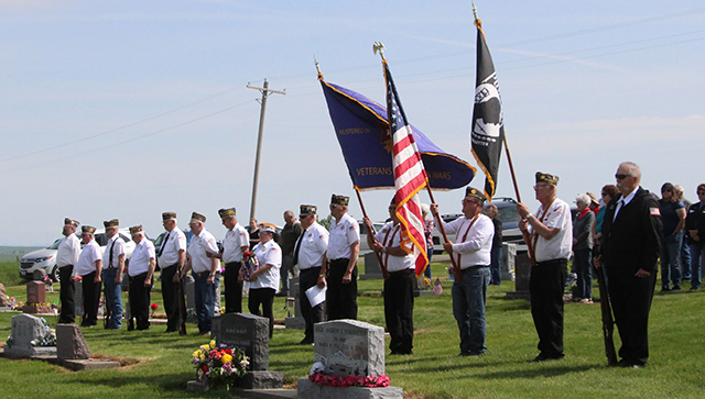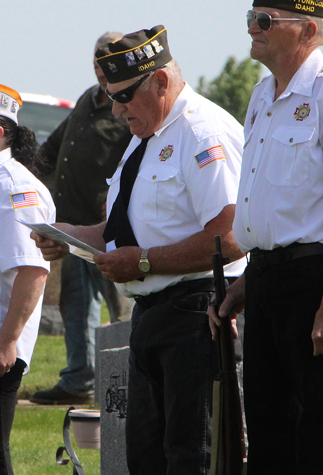 ![]() Lineup at the start of the ceremony. ![]() Sabrina Johnson lays the wreath. ![]() Jim Schumacher reads the names of those veterans buried in the Greencreek Cemetery. ![]() The gun salute at Greencreek. ![]() Joe Riener plays "Taps". Cottonwood Catholic Cemetery ![]() Lineup at the Cottonwood Catholic Cemetery. ![]() Sabrina Johnson lays the wreath at the Cottonwood Catholic Cemetery. ![]() Roy Arnzen and Jim Schumacher trade off reading the names of veterans buried in the Cottonwood Catholic Cemetery. ![]() Gun Salute at the Cottonwood Catholic Cemetery. Cottonwood Community Cemetery ![]() Sabrina Johnson lays the wreath at the Cottonwood Community Cemetery. ![]() Jim Schumacher and Roy Arnzen read the names of veterans buried in the Cottonwood Community Cemetery. ![]() The Gun Salute at Cottonwood Catholic Cemetery. ![]() Jim Schumacher reads the poem "In Flanders Field." ![]() Marching off at the end of the the services. |