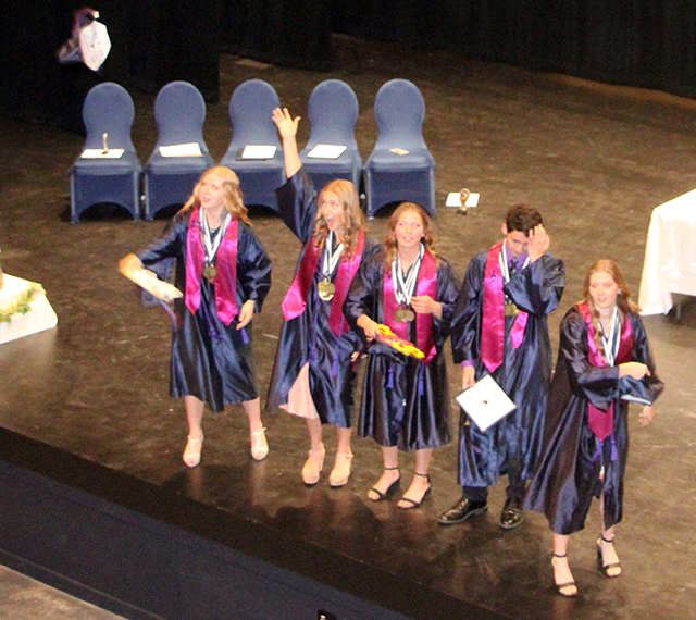 Graduation at St. John Bosco ![]() The graduates listening to Josh Lustig's speech. ![]() Josh Lustig was the commencement speaker. He graduated from then Summit Academy 10 years ago. ![]() Rachel Sonnen gives the valedictory address. ![]() Sarah Waters gives the Salutatory address. ![]() Members of the class of 2025 at St. John Bosco Academy flip their tassels after receiving their diplomas and being certified by Principal Cummings. From left are Rachel Sonnen, Sarah Waters, Noelle Chmelik, Glenn Parmantier and Julia Wassmuth. Graduation was held for the first time ever in the Pope John Paul II Theater in the Angelus Center. ![]() Grads toss their mortarboards at the conclusion of graduation. ![]() Nicole Frei and Mary Spencer provided music during the Mass and graduation ceremony.