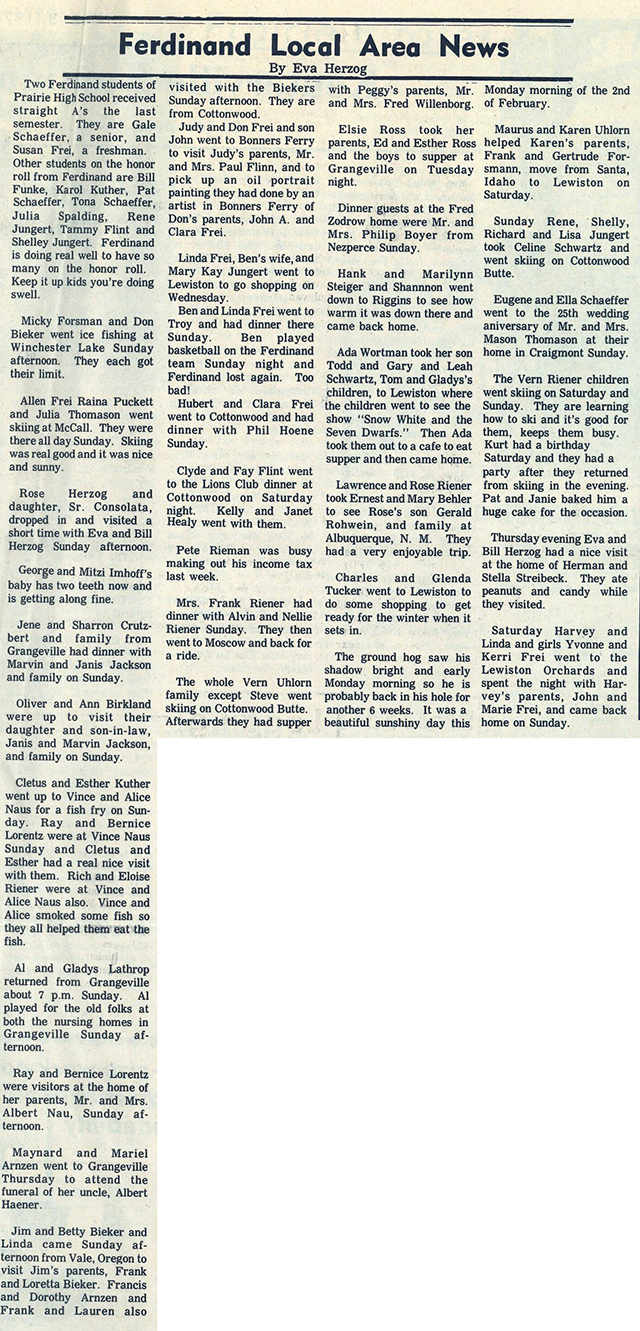 Eva Herzog's Ferdinand Area News column from the February 4, 1976 edition