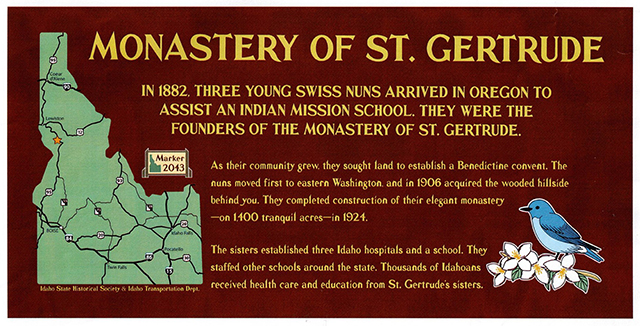These markers were originally installed over many years beginning with eighteen signs erected in 1956. The bulk of the markers were erected in the period between the 1950s and the 1970s, without a master list or consistent oversight. As a result, the historical narrative they tell is incomplete and, at times, inconsistent. Recognizing this, Keith began the project by conducting an inventory to determine what stories were told—and more importantly, what stories were missing. For instance, in Northern Idaho, sixteen markers discuss the region’s mining, but only one was dedicated to its important logging industry. There is a marker about Farragut Naval Station near Coeur d’Alene that trained over 300,000 naval cadets during World War II, but no marker devoted to the Navy’s ongoing testing of submarines at Lake Pend Oreille after the war. About 45 markers describe the journeys of Lewis & Clark and Oregon Trail travelers – people who were eager to pass through Idaho as quickly as possible but absolutely did not want to stay. Only three honored women. Historians have also uncovered new information since 1956, debunking long-held myths – such as the tale that Idaho’s jagged border with Montana was the result of a drunken surveyor crew. A new marker will explain how that border was drawn. The original signs were limited to just 75 words, a restriction that often made it difficult to fully capture the importance of a place or event. The new markers allow up to 100 words, which allows space to tell richer, more engaging stories. They will also be made of metal, ensuring they can better withstand the elements and remain legible for years to come. Keith is not just updating the existing signs. He is tasked with adding 100 brand-new ones to the highway system. One of these new markers will honor the Monastery of St. Gertrude. It will be situated along Highway 95 at the turnout near Bud’s Power Sports, about two miles south of Cottonwood. To celebrate this addition, the Historical Museum at St. Gertrude had a replica made for Keith’s recent presentation. It was unveiled during the event and now hangs in the museum’s entry. Idaho County currently has 23 markers—more than any other county—and will soon have six more as part of the 400 Idaho stories told along Idaho’s highways. Keep an eye out—your next road trip might just bring you face-to-face with a story you’ve never heard before. ![]() |