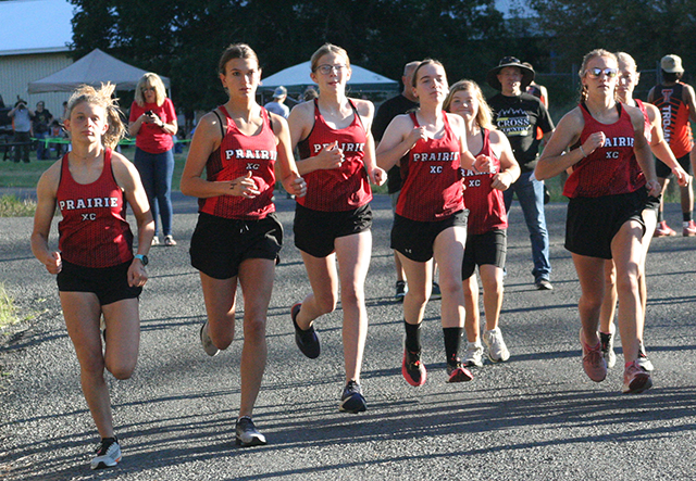 Shears places first at Kamiah Invite The Prairie Cross Country team competed at 2 meets this past week. On Thursday, Sept. 18 they traveled to the Kooskia Fish Hatchery for the Kamiah Invite. On Saturday, Sept. 20 they traveled to Eagle Island State Park for the Eagle Island Invite. Kamiah Invite Prairie had 3 girls finish in the top 10 at the Kamiah Invite led by Sydney Shears who took first place in a time of 21:47. Evelyn Gehring was third in 24:30. Callie Remacle was 7thin 26:33. Aubree Rehder finished 12thin 29:48. Lillianne Lustig was 13thin 30:45 and Bella Musick was 14thin 35:54. Prairie was the only school with enough runners for a team score. For the boys Chase VonBargen was the top finisher as he placed 6th in 20:01. Right behind in 7th was Matthew Jones in 20:25. Gabe DeCaria was 20th in 25:44 and Landon Riener was 24th in 27:36. In the junior high competition Madalynn VonBargen placed 2nd in the girls race in 15:20. In the boys race Cameron McLeod was 2ndin 11:35. Koyle Jones finished 5thin 12:22. Aiden DeLorenze placed 16th in 15:50. Isaac Riener was 17thin 15:50. Eli Duman was 20thin 16:48 and Moses Musick was 24thin 25:44. As a team they placed third behind Troy and Timberline with 47 points. Eagle Island Invite In the huge Eagle Island Invite Prairie’s high school teams competed in the JV races. In the girls race, Shears placed 20th in 22:38.46. Gehring was 56th in 25:59.25. Ella McLeod was 90th in 28:15.72. Riener was 111th in 30:40.90 and Musick was 121st in 32:14.75. As a team Prairie was 9th with 251 points. In the boys race VonBargen finished 73rd in 20:24.97. Mathew Jones was 106th in 21:45.44. DeCaria was 191stin 27:17.81 and Riener was 202ndin 30:31.83. Prairie also had 2 competitors in the junior high boys race. McLeod finished 27th in 12:08.34 and Koyle Jones was 31st in 12:16.87. The junior high runners will be competing at the Grangeville Fairway Frenzy at the golf course on Friday, Sept. 26. The next meet for the high school will be at the Spartan Invite on Tuesday, Sept. 30 at Deyo Reservoir near Weippe. The junior high will also be at that meet. ![]() The start of the girls race at the Kamiah Invite. From left are Sydney Shears, Callie Remacle, Aubree Riener, Lillianne Lustig, Bella Musick and Evelyn Gehring. ![]() ![]() ![]() Sydney Shears, Evelyn Gehring and Callie Remacle at the Kamiah Invite.. ![]() ![]() Aubree Riener and Lilllianne Lustig at the Kamiah Invite. ![]() Just before the gun to start the boys race at the Kamiah Invite. From left are Chase VonBargen, Landon Riener, Matthew Jones and Gabe DeCaria. ![]() Matthew Jones and Chase VonBargen during the Kamiah Invite. ![]() Gabe DeCaria. ![]() Landon Riener. ![]() ![]() Cameron McLeod and Koyle Jones in the junior high boys race. ![]() Aiden DeLorenze and Isaac Riener in the junior high boys race. ![]() Eli Duman in the junior high boys race. ![]() Maddalyn VonBargen in the junior high girls race. All photos by Steve Wherry of the Lewis County Herald.