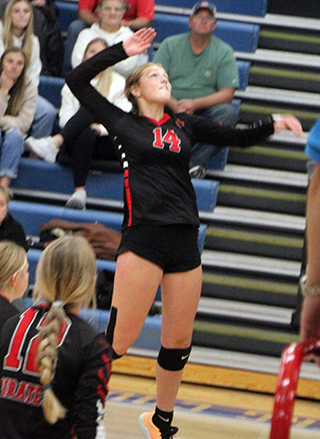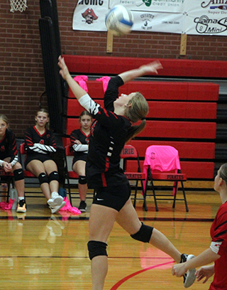 kill by Kylie Schumacher and 3 aces by Oliver to take the lead at 4-3. Troy tied it at 6 but a kill and then an ace by Anderson made it 8-6. Troy took the lead at 8-9 but a free ball by Kylie Schumacher tied it and Beka Schumacher served an ace for the lead. Riggers then scored a kill to make it 11-9. Troy again took the lead at 12-13 before a kill by Kennedy Riener and 2 aces by Avery Riener put the Pirates back on top at 15-13. Troy was able to tie it at 15, 16, and 17 but was never able to retake the lead. After a missed serve by Troy made it 21-19, Kennedy Riener and Kylie Schumacher each scored a kill to make it 23-19. After each side missed a serve it was 24-20. Kylie Schumacher then scored a block to win the set. In the second set Prairie fell behind 0-5 and had scored twice to make it 2-6 when Anderson had her leg give way coming down from a play at the net. Her parents had to take her to the hospital and that seemed to put on damper on Prairie’s play the rest of the evening. It also threw off their rotation as Hagen, who switched off with Anderson back row-front row, now had to play the whole circuit, something she hadn’t done yet this season. Prairie fell behind 3-11 before battling to sideout Troy’s serves. They also couldn’t score on their own serves. Troy was able to pick up a point here and there on serve and built at 7-20 lead. Prairie kept Troy from scoring on serve the rest of the way but could only score 1 point on their serve, an ace by Avery Riener. In the third ser Prairie took a 4-2 lead on a kill and a block by Kylie Schumacher and 2 aces by Oliver. Troy then put together 6 straight points to retake the lead and dominated the rest of the set, outscoring Prairie 3-23 the rest of the way. The fourth set saw Prairie fall behind 2-13 and 3-16. They trailed 6-21 when Kennedy Riener scored on a cross court spike. Hansen then served 3 straight points to get to 10-21 but that was Prairie’s last rally. For the match Kylie Schumacher had 10 kills including 3 blocks with 1 assist and 1 ace. Beka Schumacher had 8 kills and 1 ace. Kennedy Riener had 6 kills and 1 assist. Avery Riener had 3 kills, 11 assists and 4 aces. Anderson had 3 kills, 1 assists and 2 aces in a little more than 1 set. Hagen had 2 kills and 11 assists. Riggers had 2 kills and 2 assists. Oliver had 1 assist and 6 aces. Hansen had 1 ace. Prairie is now 5-8 overall and 5-6 in league play. This time Prairie won the JV match 25-23, 25-18, 9-15. Prairie fell behind 4-7 early but came back to tie it at 7 and again at 8. After a bricked serve by Troy tied it at 8, Tinley Hibbard served Prairie into the lead. Alli Rambo scored a kill then Hibbard served 3 aces to make it 12-8. After a sideout, Behler scored a kill and Faith Cash served an ace to make it 14-9. Troy came back to tie it at 15 but Prairie took back the lead on a kill by Rambo and an ace by Macie Uhlenkott. Troy took the lead at 18-19 but a kill by Hibbard and an ace by Behler put Prairie back on top. After Troy tied it at 20, a kill each by Bekah Shears and Halee Rowland made it 22-20. After a Troy sideout, Rambo scored a kill and then a block to get to set point at 24-21. Troy scored twice to get within 1 before hitting one too long to give Prairie the set. Cash served an ace to open the second set. After a sideout, Rowland and Rambo each scored a kill to give Prairie a 3-1 lead. Troy came back to take leads or 5-6 and 6-7 before bricking a serve. 2 kills by Hibbard, a kill by Rowland and an ace by Behler gave Prairie an 11-7 lead. Troy again came back to take the lead at 11-12. A kill by Rowland, 2 aces by Hibbard and a kill be Rambo put Prairie back on top 15-12. Prairie held the lead the rest of the set. At 19-17 Erica Schlader scored a kill and Rambo went to the service line. A kill by Audrey Warren, 2 aces by Rambo and another kill by Warren had Prairie at match point at 24-17. Troy scored a sideout but then Schlader won it with a kill. In the third set Prairie never held the lead and only tied it twice at 8-8 and 9-9 as Troy salvaged a set. Prairie trailed 4-8 when Blake Uhlenkott scored a sideout kill and then went to the service line. A kill each by Mikayla Rowland and Molly Fowler and an ace by Blake tied it at 8. After a sideout, Fowler scored a kill to tie it at 9. Troy then scored a sideout and served out the set. ![]() Beka Schumacher pushes the ball over against Kendrick. Also shown is Kylee Riggers. ![]() Harlee Hansen serves against Kendrick. ![]() Mia Anderson sets the ball against Kendrick. ![]() Kylie Schumacher serves against Kendrick. ![]() Tori Shears spikes from the back row against Kendrick. At right is Sierra Oliver. ![]() Sierra Oliver digs a serve against Grangeville. Looking on is Beka Schumacher. ![]() Avery Riener serves against Grangeville. ![]() Zoey Behler goes up for a spike against Grangeville at the Genesee Tournament. Also shown is Kylee Riggers. ![]() Beka Schumacher goes up for a spike against Grangeville at the Genesee Tournament. Also shown is Avery Riener. ![]() Sierra Oliver serves against Grangeville at the Genesee Tournament.