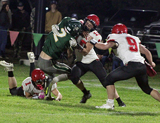 Pirates win big 58-38 at Potlatch The Prairie football team traveled to Potlatch Friday, Oct. 10 and defeated the Loggers 58-38. If they weren’t in already, the win likely clinched a state playoff berth with possibly a first round home game. ![]() The opening kickoff left Prairie starting on offense from their own 11 yard line. On second and 4, Chris Schumacher picked up 21 yards around right end for a first down. On second and 8 from their own 40, Levi Gehring carried the ball to the left side and raced 60 yards to the end zone for the game’s first touchdown. Kade Quintal ran in the 2-pointer for an 8-0 lead. Potlatch answered back by going 66 yards in 9 plays to score their first touchdown on a 2 yard run by Connor Carpenter. Prairie stopped the 2-point run short of the end zone to hold on to the lead at 8-6. Potlatch squibbed the ensuing kickoff with Schumacher recovering at the Prairie 39. Gehring picked up 7 yards then Quintal passed to Payton Stamper for 9 and a first down. On the next play a holding penalty wiped set the Pirates back to their own 45. However Quintal connected with Stamper down the left side for 33 yards and a first down at the Potlatch 22. Prairie then ran the ball on 5 straight plays with the final one being an 8 yard sweep to the left by Gehring for his second touchdown of the game. Quintal then passed to Lane Mader for the 2-point conversion to give Prairie a 16-6 lead. Potlatch again answered back with a 9-play, 70 yard drive that ended with a 17 yard pass from quarterback Jay Marshall to Trey Magallon. Those same two hooked up for the 2-point conversion to put Prairie’s lead to 16-14. Prairie started their next possession at their own 40 after an 11 yard return by Cooper Riener. On the first play of the possession Quintal connected with Levi McElroy for 35 yards to the Potlatch 25. After a 1 yard run, Quintal tossed a short pass to the left to Schumacher who took the ball 24 yards to the end zone. Quintal then passed to Gehring for the 2-pointer for a 24-14 lead. Potlatch’s next possession started at their own 26 after a holding penalty on the kickoff return. It took Potlatch 5 plays to move the ball to their own 48. On the next play they ran a reverse to Magallon who went 52 yards down the left sideline to the end zone. Riener tackled the runner short of the end zone on the 2-point try leaving the score at 24-20. To this point neither defense had slowed down, much less stopped the other team’s offense. Prairie had a holding penalty on their kickoff return as they started at their own 30. A 16 yard pass to Gehring and a 26 yard keeper by Quintal moved the ball to the Potlatch 28. At that point the offense started to sputter. Quintal was sacked for a 10 yard loss and on the next play his pass was intercepted by Carpenter at the Logger 33 and returned to the 47. However the Prairie defense had their best series as they force Potlatch to punt from the 47 after gaining nothing in 3 plays. Prairie took over at their own 22 and a 36 yard pass to McElroy moved the ball to the Potlatch 30. On fourth and 12 at the 32, Quintal was intercepted again by Carpenter. However on the next play Gehring intercepted Marshall’s pass at the Prairie 45. With under 20 seconds left in the half Quintal passed to a wide open Gehring in a crossing pattern. Gehring managed to take the ball and broke a couple of tackles and jumped over another Logger on his way to the end zone for a 55 yard scoring play. Gehring then ran in the 2 pointer to give Prairie a 32-20 lead with 2.5 seconds left in the half. Potlatch received the second half kickoff and a holding penalty on their first play forced them to punt the ball from their own 33. Prairie took over at their own 40 after a 5 yard return by Gehring. Quintal completed a screen pass to the left to Schumacher who went 34 yards to the 6 yard line. Gehring scored on the next play for his fourth touchdown of the game. For the first time in the game, Prairie came up short on the 2-point try but now led 38-20. On Potlatch’s next possession, the Loggers went for it on fourth and 6 from their own 37 and Marshall was sacked for a 10 yard loss by Mader. Prairie took over on the Potlatch 27 and 4 plays later Quintal passed to Schumacher for a 10 yard touchdown. Gehring appeared to score the 2-pointer but Prairie was called for holding and Quintal’s pass from the 13 fell incomplete. Prairie now led 44-20. Potlatch showed they weren’t done though as Marshall passed to Magallon for 61 yards and a touchdown on their next possession. The Loggers then recovered an onside kick at the Prairie 45 and Marshall connected with Magallon for another touchdown on the next play. Potlatch was unable to score the 2-pointer either time but now trailed just 44-32. Trajan Elven recovered another onside kick attempt by the Loggers at the Prairie 48. 2 runs by Gehring netted 11 yards and a first down. A holding penalty was called on the next play but a 23 yard pass from Quintal to McElroy converted another first