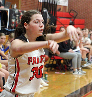 with a 3-point play. 20 seconds later she added a putback. Sage Elven made 2 free throws and Kylie added another putback. Hailey Hanson sank a 3 to make it 12-0 with 3:36 left in the opening quarter. ![]() Nezperce got on the scoreboard with a pair of free throws then Prairie closed out the quarter with a lay-up by Elven on an inbounds play and a free throw by Beka Schumacher for a 15-2 lead at the quarter break. Nezperce scored their first basket of the game to open the second quarter and Beka Schumacher answered with a shot in the lane. After another basket by Nezperce, Prairie went on a 9-0 run. Sydney Shears scored a lay-up. Erica Schlader scored in transition after a steal by Hanson. Hanson then drove for a lay-up and Kylie Schumacher sank a 3 to make it 26-6 with 5:21 left in the half. Nezperce managed to outscore Prairie 5-7 the rest of the half as Prairie got a lay-up from Kylie Schumacher and a 3 from Elven. Prairie led 31-13 at the half. Prairie opened the second half scoring with a putback by Kylie Schumacher and a basket on an inbounds play by Shears. Nezperce then put a mini-rally together, out scoring Prairie 2-7 with a putback by Elven being Prairie’s points. Prairie still led 37-20 then outscored Nezperce 8-4 with Kylie Schumacher scoring 6 of those 8 and Elven the other 2 for a 45-24 lead. Nezperce then scored the final 5 points of the quarter to cut Prairie’s lead to 45-39 after 3 quarters. A 3 by Nezperce opened the fourth quarter then the Pirates put together an 8-0 run. Beka Schumacher started it with a lay-up. A basket and then a 3 by Elven followed with Kylie Schumacher finishing the run with a free throw that made it 53-32 with 3:01 left in the game. Nezperce then scored the final 3 points. Kylie Schumacher scored 21 to lead the Pirates in scoring with Elven adding 16. Hanson and Beka Schumacher scoring 5 each with Shears scoring 4 and Erica Schlader 2. Prairie had a 31-23 edge on the boards with Kylie Schumacher making it a double-double with 10 boards. Shears and Hanson added 6 rebounds each. Elven had 4 steals while Shears and Hanson had 3 steal each and 4 assists each. Prairie was 22 for 44 from the field, 50%, and 5 for 16 at the line, 31%. Nezperce was 11 for 34 from the field, 32%, and 11 for 19 at the line, 58%. Prairie also won the 2-quarter JV game 39-17. Reagan Brannan got off to a hot start with 10 of Prairie first 12 points as they took a 12-2 lead. She started things with a 3. Nezperce scored then Prairie scored 9 straight. Kennedy Riener had a basket then Brannan scored the next 7 on a basket, a three and another basket. Each team added 4 points to close out the first quarter with Prairie up 16-6. Zoey Behler and Riener each had a basket for Prairie. Nezperce opened the second quarter with a free throw then Prairie scoring 12 straight points. Brannan, Riener and Alli Rambo each scored a basket then Tori Shears and Capri Hagen each scored a 3 for a 28-7 lead with 5:13 to play. Nezperce scored 4 straight then Prairie went on an 11-4 run. Blake Uhlenkott scored a free throw then Bekah Shears hit a 3. Hagen scored a putback to make it 34-11. After a Nezperce basket, Riener hit a 3. After another Nezperce basket, Lillian Rehder made a basket to make it 39-15 with 1:08 to play. Nezperce added a final basket. Brannan wound leading Prairie in both scoring and rebounding with 12 points and 5 boards. Riener scored 9 while Hagen scored 5. Tori and Bekah Shears scored 3 reach while Behler, Rehder and Rambo scored 2 each and Uhlenkott scored 1. Prairie outrebounded Nezperce 17-9. Riener and Behler each had 3 steals and Uhlenkott had 3 assists. The JV’s were 16 for 28 from the field, 57%, and 1 for 6 at the line, 17%. Nezperce was 8 for 17 from the field, 47%, and 1 for 4 at the line, 25%. Prairie 15 16 14 8 -53 Nezperce 2 11 16 6 -35 Prairie-Shears 2-5, 0-4, 4; Hanson 2-4, 0-0, 5; Schlader 1-5, 0-3, 2; Elven 6-11, 2-2, 16; K. Schumacher 9-13, 2-3, 21; B. Schumacher 2-6, 1-4, 5; Rowland 0-0, 0-0, 0; Brannan 0-0, 0-0, 0; Rehder 0-0, 0-0, 0; Cash 0-0, 0-0, 0. 3-pointers-Elven 2, Hanson, K. Schumacher. Nezperce-Ralstin 1-4, 3-5, 5; Lux 3-7, 4-4, 10; Wilcox 4-11, 0-2, 10; A. Duuck 1-3, 0-2, 2; Kirkland 1-4, 1-2, 3; Grant 0-2, 0-0, 0; Jensen 0-0, 2-2, 2; E. Duuck 1-2, 1-2, 3. 3-pointers-Wilcox 2. Vs. Moscow The game against Moscow was a back and forth battle.Moscow won the tap and scored the game’s first basket. Prairie came back and tied it with a basket by Schlader. Prairie then took their first lead on a pair of free throws by Shears. Moscow then scored 6 straight to retake the lead. Prairie then put together their own run. Elven scored a free throw. Shears drove for a lay-up and then made a steal that led to a lay-up by Elven that put Prairie back on top. Elven added a free throw and Schlader scored after another steal by Shears to make it 12-8. After a basket by Moscow, Beka Schumacher scored a putback and Elven drove full-court for a lay-up to give Prairie a 16-10 lead at the end of the first quarter. Moscow outscored Prairie 3-8 in the first 2:30 of the second quarter to cut the lead to just 1 at 19-18. Prairie’s only points came on a free throw and a basket by Beka Schumacher. Prairie then pushed the lead back to 6 on a back-door lay-up by Elven and a 3 by Kylie Schumacher. After a basket by Moscow, Beka Schumacher scored again to make it 26-20 with 1:46 to play in the half. Moscow then scored the final 7 points of the half to take a 26-27 halftime lead. Prairie took back the lead with a 3 by Elven to open the third quarter. Shears followed with a lay-up on a feed from Schlader who had grabbed an offensive rebound. Moscow scored then Kyle Schumacher and Schlader each scored for a 35-29 lead. After a Moscow basket, Elven scored with 8 seconds left in the quarter. Moscow rushed the ball up the court and scored to make it 37-32 after 3 quarters. Beka Schumacher opened the fourth quarter by making 2 of 4 free throws. Moscow responded with a 2 and a 3 to 