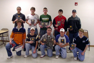 Shown are the awards winners for the Boys Basketball team. Back from left are Seth Crane, JV co-most valuable; Jake Chaffee, varsity most improved; Matt Baerlocher, varsity co-captain and most valuable; Kelby Wilson, JV co-captain; and Christopher Schumacher, JV most inspirational. Front from left are Tyler Crane, Mat Forsman, JV co-most valuable; Shane Doyle, varsity most inspirational; Kevin Funke, JV co-captain; and Sean Daly, JV most improved. March 23rd Away Lewis County 4:00 March 25th Away Orofino 4:30 March 26th & 27th Away Orofino Tour. TBA April 6th Home Potlatch 4:30 April 13th Away Grangeville 4:00 April 16th Home C.V. 4:00 April 20th Away Kamiah 4:00 April 22nd Home Orofino 5:00 April 23rd Home Grangeville 4:00 April 27th Away Potlatch 4:00 April 29th Home Lewis County 4:00 April 30th Home Kamiah 4:00 May 3rd Away C.V. 4:00 May 7th-15th Away District Tour. (Orofino) TBA May 20th- 22nd Away State Tour. (Orofino) TBA Prairie Track Schedule Thursday, March 18th @ Kamiah 4:00 p.m. Tuesday, March 23rd @ Lapwai 4:00 p.m. Saturday, April 10th Clearwater River Invitational @ Kamiah 10:00 a.m. Tuesday, April 13th @ Orofino 4:00 p.m. Saturday, April 24th Lewis & Clark Games @ Kamiah 10:00 a.m. Saturday, May 1st Kamiah Invitational @ Kamiah 10:00 a.m. Tuesday, May 4th Central Idaho League Meet @ Lapwai 4:00 p.m. Friday, May 7th All Stars @ Lewiston 3:00 p.m. Friday, May 14th &Saturday, May 15th Regionals @ Kamiah 4:00 p.m.10:00 a.m. Friday, May 21st &Saturday, May 22nd State Track @ Boise TBA |
