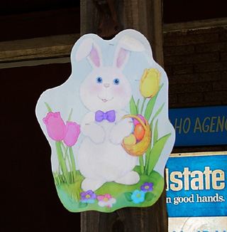 The Easter Bunny guards his eggs in front of 'Friends.'