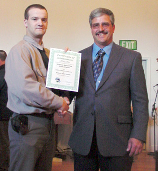 shown with graduate Wes Shira. Duman spoke to the 33 inmates receiving