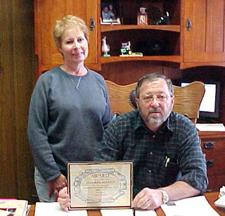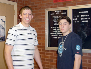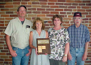 From left John and Chris Kaschmitter and Marie and Hank Lerandeau were named as Boosters of the Year by the Prairie Booster Club. Harman Agency, represented by owners Marilyn and Gordon Harman, was named the Business Booster of the Year by the Prairie Booster Club. Prairie High School students of the month for June are Matt Baerlocher, left, honor student, and Justin Smith, outstanding student.