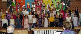 From the top down are the preschool, Kindergarten, 1st, grade, 2nd grade, 3rd grade and 4th grade classes performing at the Elementary School spring concert Tuesday, May 18. Full sized pics can be obtained via email by contacting the editor. |