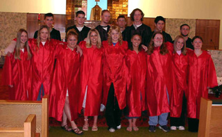 The VFW and American Legion held a joint Memorial Day service at the Ferdinand Cemetery. The Prairie Elementary staff with the check they received in the Idaho Lottery Scratch for Schools program. See article at left. Several members of the PHS class of 2004 participated in the Senior Mass held at St. Anthony's Church at Greencreek. Graduation is Friday at 7:30 p.m. A Business Forum sponsored by Ida-Lew Economic Development was well attended at the Cottonwood Community Hall last week. |