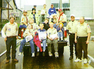 8th Grade students from Prairie Middle School chosen to record radio spots at KORT for Red Ribbon Week. Front L to R: Bryce Forsmann, Steven Baerlocher, Kyle Daly and Zak Waller. Back L to R: Mika Osterbuhr, Michele Geis, Kim Bower, Chelsea Long, Kristi Poxleitner, Rachel Kaschmitter, Alicia Pepper, Jennifer Enneking, Caitlyn Johnson and Laura Gehring. See article at left for more pictures. Skyler Badertscher and his mother Jennifer run a slide show protraying what he has gone through in the past year battling leukemia to his former classmates at Prairie Elementary. The Badertschers now live in Alaska. Skyler was diagnosed with leukemia about a year ago. The Cub Scout Pack and Boy Scout Troop with over 750 lbs. of food they collected in their recent Scouting for Food drive that finished on November 13. They delivered the food to St. Mary's Food Bank on King Street later that morning. Pack 638 and Troop 638 want to thank everyone who donated. If they missed you, please call Bob Behler at 962-3591 and they will pick up your donation. On November 13 at St. Mary's Church Dakota Wilson a member of Pack 638 was presented with the Light of Christ medal by his parents Emmett and Cindy Wilson and blessed by Father Camillus Temba. At the October Pack meeting Dakota was recognized for achieving this award and was presented with the religious knot that is permanently attached to his Cub Scout then Boy Scout uniforms to represent the medal when it is not worn. |