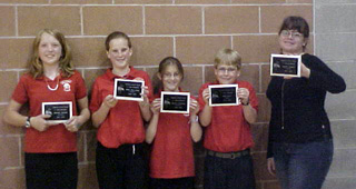 with their plaques. From left are Danielle Cochran, Betty Jane Clark, Kendra
