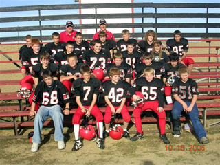Coach Kenny Mader along with assistant coach Paul Schmidt, led the Prairie junior high football team to an undefeated 8-0 record this year. The Pirates beat Lewis County at home 52-22; Grangeville at home 42-0; Grangeville away 34-0; Kamiah away 68-38; Timberline away 54-14; Lapwai at home 78-32, ended by mercy rule in the third quarter; Lewiston at home 22-0 and Orofino at home 30-14. Congratulations to the junior high for their teamwork and a great season! Also thanks to everyone who went and supported the team. Shown is the Prairie Middle School Jr. High football team which last week completed an undefeated, 8-0, season. Front from left are Carl Coons, Beau Schlader, Brock Heath, Sheldon Klinkefus and Jeremy Ross. Second row from left are Kyle Holthaus, Colton Nuxoll, Brandon Poxleitner, Seth Guyer and Ryan Dalgliesh. Third row from left are Dave Johnson, Dustin Schaeffer, Joe Schumacher, Derek Schaeffer and Taylor Ratcliff. Fourth row from left are Dylan Prigge, Tyrell Langston, Conner Rieman, Branden Waller, Devin Schmidt, David Sigler and Jack George. In back are coaches Ken Mader and Paul Schmidt. Pirates beat Lapwai for second straight win In a hard-hitting, very competitive football game the Prairie Pirates came away with their second straight win, 26-20 over Lapwai, Friday, Oct. 21 at Cottonwood on Senior Night. Prairie started strong as they scored the first two times they had the ball. On the opening drive they started at their own 29 and picked up a first down on two 5-yard penalties against Lapwai. After a second down holding penalty set them back, quarterback Mat Forsmann lofted a pass deep over the middle to Sean Daly, who caught the pass at about the 50. It looked like he would be tackled at about the Lapwai 20 but the defender was more concerned about trying to strip the ball than make the tackle and Daly was able to shrug him off and go into the end zone on a 73 yard scoring play. Forsmann ran in the 2-pointer for an 8-0 lead. The defense shut down the Wildcats, forcing a punt with Prairie taking over at their own 42. Ryan Daly picked up a first down with a pair of 5 yard runs. Prairie then picked up another first down on their only pass play of the drive as Lapwai was called for pass interference. Lapwai bounced back with a 63 yard kickoff return that set them up at the Prairie 14 yard line. After eing set back by a holding penalty, Lapwai scored on a 20 yard pass play. Their conversion try failed making the score 14-6. The next two possessions saw both teams move the ball only to turn it over on a fumble. Jake Holthaus recovered Lapwai’s fumble at the Prairie 21 and Lapwai was hit with an unsportsmanlike penalty after the play. Two plays later Prairie ran the “Chris Schumacher” special, a tackle eligible play where Forsmann completed a pass for a 31 yard gain to Schumacher. Prairie’s drive stalled at the 18 though as they came up a foot short on fourth down. The Pirates got the ball right back though 3 plays later as Lapwai fumble with J.D. Riener recovering at the 25. Prairie ran the ball 3 straight times, twice by Tim Russell for 6 yards and Ryan Daly picked up the first down on a 9 yard run. From the 10 they tried a pass play but Forsmann was rushed by the Lapwai defense. It appeared he would be tackled for a huge loss back to about the 20 but he escaped and turned the ball upfield. He broke 3 or 4 more tackles and wound up going in for the score having run about 50 yards for what went in the books as a 10-yard scoring run. That put Prairie up 20-6 with 4:20 left in the first half. Lapwai came right back with a long drive picking up a couple of big first downs on third and longs with pass plays. They scored a touchdown with just 1:09 left in the half and added the 2-pointer to cut Prairie’s lead to 20-14. Prairie tried to score in the final minute but turned the ball over on downs at their own 27. The Pirates then dodged a bullet when Lapwai’s receiver dropped a deep pass on the final play of the half. Early in the third quarter both teams played giveaway. Prairie started the half with an onside kick with Corey Schaeffer recovering at the Lapwai 47 after Jake Holthaus had blasted the Lapwai player who tried to pick up the ball. Prairie couldn’t capitalize though as a 12 yard loss on a sack was followed by an interception that Lapwai returned to the 5 yard line. Prairie dodged a score there when Lapwai fumbled on the next play with Schaeffer getting his second fumble recovery out at the 16. Prairie kept the ball only 5 plays before Danny Riener was intercepted trying to throw the ball back to quarterback Forsmann. Prairie got the ball right back though when Lapwai’s Wade Anderson fumbled on his second straight carry with Schumacher recovering at the Prairie 34. Prairie picked up a first down on Ryan Daly’s 13 yard run but were then forced to punt. Forsmann’s punt was blocked and Lapwai took over at the Prairie 40. Four straight pass plays later, Lapwai connected for a 30 yard scoring play to tie the game at 20 with 2:44 left in the third quarter. Prairie came right back though with a 13 play drive, all runs, that was helped out by 20 yards in penalties by the Wildcats. Two of the four 5-yard penalties helped Prairie convert third down plays. Riener ended the drive by bursting up the middle for 6 yards and the touchdown to put Prairie up 26-20 with 9:52 left in the game. Lapwai got a big return on the kickoff out to the 40 but fumbled at the end of the run with Sean Daly recovering at the Lapwai 40. Forsmann passed to Phil Henry on first down for 25 yards but the play was called back by a penalty. They then tried a pass but Sean Daly intercepted at the Prairie 34. Prairie was forced to punt and Lapwai took over at the Prairie 39 after a 12 yard return. After picking up a first down, Lapwai lost 21 yards on a holding penalty that occurred 11 yards behind the line of scrimmage. That set up a fourth and 26 from the Prairie 45 and Lapwai’s deep pas
