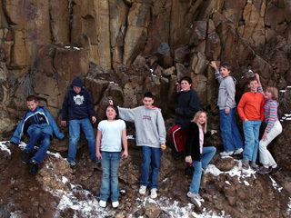Duclos, and Claire Whitley at the rock pit collecting rock samples for