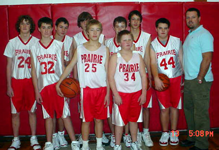 The Prairie Pirates lost twice in the Prairie Classic Tournament as they lost 56-63 to Council on Friday, Dec. 16 and 49-66 to the Lewiston JV on Saturday, Dec. 17. Against Council Prairie jumped out to a 6-0 lead with Seth Crane involved in all 3 baskets. He scored 2 of them and deflected a pass toward Chris Schumacher who scored the other basket. Prairie then went cold as Council scored the next 11 points to take the lead for good. Corey Schaeffer ended the run with a 3-point play that cut the lead back to 2 but Council pushed the lead up to 6 at 13-19 by the end of the first quarter. In the second quarter Council connected on 3 of 5 three-point attempts as they outscored Prairie 2-13 to take a 15-32 lead with 2:50 left in the half. Prairie then made a run of their own as they scored the final 7 points of the half, all by Mat Forsmann. Forsmann scored 3 of 4 free throws then hit a pair of baskets, one on a steal and drive and the other on a short jumper from the side. Council opened the third quarter with another 3-pointer but Prairie then scored the next 8 straight to cut the lead down to 5 points. Crane had a pair of baskets with Forsmann and Schumacher each adding a basket. Council then answered with 3 straight 3-pointers to quickly push the lead back to double digits at 14. Prairie was able to cut the lead back to 10 by the end of the quarter as Josh Gabica scored a basket and Crane added a pair of baskets. Ryan Daly opened the fourth quarter scoring with a 3-pointer and Corey Schaeffer added a free throw as Prairie cut the lead to 6 at 40-46 but Council responded with a 3-11 run to push the lead back to 14 with 1:58 to play. Prairie was able to force turnovers and once again cut the lead down to 5 at 56-61 with 18 seconds left but that was as close as they would get. Council’s Josh Edmonson did most of the damage for the Lumberjacks as he scored 26 points, hitting 3 of 5 from 3-point range and he was 9 of 9 at the line in the fourth quarter. Forsmann led Prairie with 20 points with Crane scoring 14, Schaeffer 10, Schumacher 4, Ryan and Sean Daly 3 each and Gabica 2. Prairie held a 37-30 rebounding edge with Schaeffer pulling down 11 to lead the team. Schaeffer also had 4 steals and Crane had 3. Forsmann had 6 assists and Gabica had 3. Prairie was 22 for 53 from the field, 42%, and 10 of 18 at the line. Council was 20 for 51 from the field, 39%, and 13 for 14 at the line. They were 10 for 19 from 3-point range. Against the Lewiston JV on Saturday the Pirates were outscored in every quarter by the Bengals. Lewiston took back the lead on a 3-pointer but Forsmann tied it with a free throw. Lewiston took the lead for good with a pair of free throws and built their lead to 12-17 by the end of the quarter. They opened the second quarter with a pair of 3-pointers just seconds apart. The second coming after Lewiston stole the ball in the backcourt. Schaeffer scored 6 of Prairie’s 13 second quarter points with Crane adding 4 and Forsmann 3. In the third quarter Crane scored 11 of Prairie’s 17 points but Prairie wasn’t able to gain any ground. In the fourth quarter the Pirates’ offense went cold as they scored only 1 basket from the field, a 3-pointer by Forsmann in the final minute. Crane wound up with 22 points to lead the Pirates with Forsmann scoring 13, Schaeffer 12 and Gabica 2. Lewiston held a 34-43 rebounding advantage. Schaeffer led the Pirates with 12 rebounds with Forsmann adding 6. Forsmann had 2 steals and 6 assists. Prairie was 18 for 51 from the field, 35%, and 12 for 21 from the line. Lewiston was 23 for 57 from the field, 40%, and 16 for 21 at the line. With the losses Prairie drops to 2-2 on the season. Vs. Council Council 19 13 14 17 -63 Prairie 13 9 14 20 -56 Prairie-Crane 6-11, 2-3, 14; Gabica 1-3, 0-0, 2; Schaeffer 4-10, 2-3, 10; Forsmann 7-17, 6-8, 20; Schumacher 2-5, 0-3, 4; R. Daly 1-3, 0-0, 3; S. Daly 1-4, 0-0, 3; Riener 0-0, 0-1, 1. 3-pointers-R. Daly, S. Daly. Council-Edmunson 7-11, 9-9, 26; C. Green 3-10, 0-0, 8; McConnell 2-10, 0-0, 6; Hansen 1-5, 0-0, 2; B. Chadwell 2-5, 2-3, 6; Paradis 1-2, 0-0, 2; Schuck 3-4, 2-2, 11; J. Green 1-4, 0-0, 2. 3-pointers-Edmunson 3, Schuck 3, C. Green 2, McConnell 2. Vs. Lewiston JV Prairie 12 13 17 7 -49 Lew. JV 17 19 18 12 -66 Prairie-Crane 10-21, 2-3, 22; Gabica 1-3, 0-0, 2; Schaeffer 4-11, 4-8, 12; M. Forsmann 3-10, 6-9, 13; Schumacher 0-2, 0-0, 0; R. Daly 0-2, 0-0, 0; Riener 0-0, 0-0, 0; S. Daly 0-2, 0-1, 0; S. Forsmann 0-0, 0-0, 0. 3-pointers-M. Forsmann. Lew. JV-Smith 1-2, 0-0, 3; Forge 1-5, 0-0, 3; Paduso 2-5, 7-9, 11; Hasenoehrl 4-6, 3-3, 11; Wagner 1-4, 0-0, 2; Heitzman 0-5, 0-0, 0; O’Harra 6-10, 0-0, 12; McIntosh 3-5, 3-4, 9; Kerns 0-0, 0-0, 0; Balmer 3-4, 1-2, 9; Guzman 2-7, 2-2, 6; Watson 0-4, 0-1, 0. 3-pointers-Balmer 2, Smith, Forge Schmidt takes first place Garrett Schmidt competed in a USA Wrestling tournament at Pendleton, Ore., Saturday, Dec. 17 and took first in his weight class. There were 6 wrestlers in his class and he wrestled 4 times, winning all 4 matches. He won 3 matches by pin and won the fourth 4-2. Garrett is the son of Kevin and Theresa Schmidt. 7th and 8th grade teams both win Prairie Middle School’s 7th grade Basketball team had a great season. They played 9 regular season games and ended the season with 1 loss. They played in a league tournament in Nezperce and took 1st place. Congratulations to the team and thanks to Ed Holthaus for doing a great job of coaching the boys! The 8th grade team played 9 regular season games and ended the season undefeated. This is the second year that they have been undefeated. They also took 1st place in the league tournament. Congratulations to the team and thanks for Ryan Hasselstrom for a job well done! The Prairie Middle School 7th grade team which finished the season with only 1 loss. Pictured left to right: back row: Devin Schmidt, Mitchel Jungert, Seth Guyer, Ryan Dagliesh, DJ Walker. Front row: Brock Heath, Sheldon Klinkefus, Mike Karel, Sila