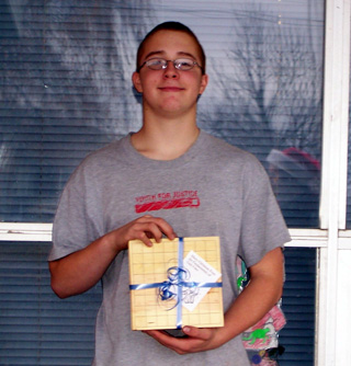 Jason VonBargen holds the checkerboard he, Zak Waller