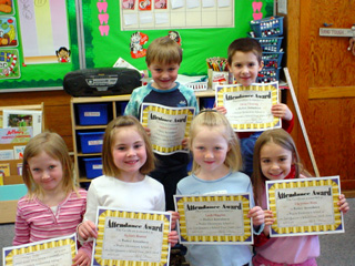 and Laina Sonnen. In the bottom photo are Kindergarten perfect attendance