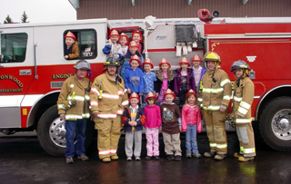 last week for a fire safety program. Afterwards the Kindergartners posed