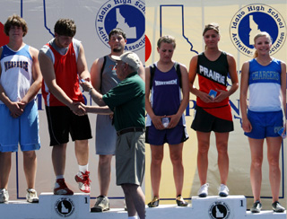 to the top of the awards podium. Riener won both the shot put (shown) and