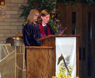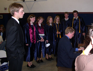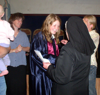 Jacob Uhlenkott playing his song he wrote for the seniors during the reception that followed Lauren Wemhoff with Sr. Petronella and some of her family members after graduation Maria Osborne reading petitions at the Baccalaureate Mass. Above photos taken by Julie Schumacher. |