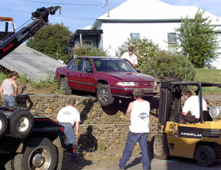 way. Bud’s Saw Service’s fork lift was then used (bottom photo) to lift
