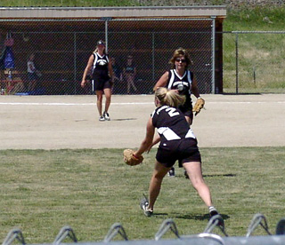 The Camas Prairie Zephyrs Senior Babe Ruth team split a pair of one-run games against Lewiston Friday, July 14. They lost the first game 9-8 but came back to win the second game 10-9. The opening game wound up a lot closer than it was for most of the game. The Zephyrs trailed 2-9 going into the seventh inning. They rallied for 6 runs only to fall short by 1. Gene Fogleman pitched allowing 6 hits with 4 walks and 7 strikeouts. Jason Seloske and Aaron Bruening had 2 hits each while C.J. Rieman and Wade Peterson each had a double and Fogleman, Stephen Key and Justin Johnson each had a single. In the second game Johnson pitched 3 1/3 innings and allowed 5 hits with 3 walks and 3 strikeouts. Rieman pitched 1 2/3 innings and allowed just 1 hit with 3 strikeouts and no walks. Fogleman and Bruening had 2 hits each while Johnson, Peterson and Phil Henry had 1 hit each. The Zephyrs will be defending their state title this coming weekend at Church Field in Lewiston. The tournament format will be pool play and will start Friday, July 21. The Zephyrs’ first game will be at 1 p.m. against Nampa and then they will play Moscow at 4 p.m. They’ll face Lewiston at 10 a.m. on Saturday. Wins and losses in pool play will determine the Saturday afternoon matchups. The 1st place team will advance to regional competition in Calgary, Alberta the following week. The Zephyrs would like to thank their sponsors: Gem Chain Bar, Les Schwab Tires and Ace Home Center. Zephyrs Schedule July 26-30-Regional Tournament at Calgary, Canada. A competitor is about to connect in the annual Home Run Derby which was part of the Buggy Whip Men's Softball Tournament this past weekend. Action from the Buggy Whip Women's Softball Tournament held this past weekend. Primeland's rightfielder races to catch a short fly ball. |