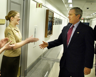 She is administrative assistant to Secretary of Defense, Donald Rumsfeld
