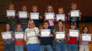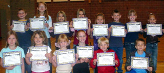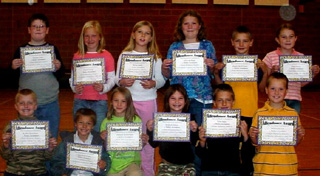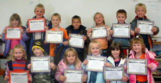 Those shown with purple bordered certificates achieved perfect attendance during the first quarter while those with red bordered certificates achieved outstanding attendance, missing only 1 day or less. |