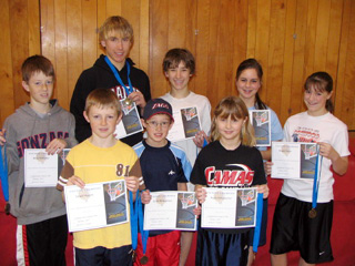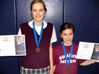 Ten boys and girls from Prairie Elementary School, Prairie Middle School, and Summit Academy, ages 10 to 14, were named local and district champions of the 2007 Knights of Columbus Free Throw Championship and have earned the right to compete at the state level. Knights of Columbus Council #1389 from Cottonwood, Ferdinand, Greencreek, and Keuterville sponsored the local competition at the three schools during Physical Education periods. The winners emerged from a pool of 98 students who participated in the free event. All youth ages 10 to 14, to include home schoolers, were eligible to participate. Kayla Schumacher was the 10-year old girls’ champion and Dylon Bruegeman was the winner of the 10-year old boys’ division. In the 11-year olds’ bracket, Megan Rehder was the girls’ champion and Jared Higgins was the boys’ champion. Twelve-year-old winners in the girls’ and boys’ division were Megan Sigler and Justin Schmidt. The 13-year old girls’ division was won by Savanah Prigge and the boys’ by Beau Schlader. Fourteen-year-old champions were Haleigh Schmidt in the girls’ bracket and Devins Schmidt in the boys’. Congratulations to the winners. Each council contestant shot 15 three-throws in the contest. Successive rounds of five free throws per contestant settled ties until a participant in each category shot their way to the top spot. Because the Cottonwood K of C Council is the only member in district 6 participating in the KC hoop shoot, each council winner was also an automatic district winner. District winners were invited to shoot another 25 free throws on Saturday, February 3, 2007 and those who participated will be submitted for state competition. After the free throw shooting was finished each winner received a KC Certificate recognizing his or her achievement and a district champion medal. In addition, the winning scores will be submitted to compete in the state competition later this winter with the possibility of advancing to the international level during the spring. We expect to hear the results of the state competition about May 1 and hopefully present some state winner trophies at school assemblies. KC Hoop Shoot winners from Prairie Schools are shown. Back from left are Beau Schlader, Devin Schmidt, Justin Schmidt, Haleigh Schmidt, & Megan Sigler. Front from left are Jared Higgins, Dylon Bruegeman, & Kayla Schumacher KC Hoop Shoot winners from Summit Academy are Savanna Prigge left and Megan Rehder. |