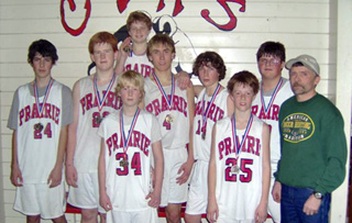 Prairie’s AAU 8th grade boys team took first place in the Kamiah Tournament Saturday February 24. Shown are from left Ryan Dalgliesh, Dave Johnson, Brock Heath (back row), Devin Schmidt, Seth Guyer, Mitchel Jungert (back row),S ilas Whitley(front row), Beau Schlader (front row) and coach Gordon Heath. CONGRADULATIONS BOYS !!!! Another Big Win For Prairie 8th Grade Boys AAU Team... Congratulations goes out to a team who uses their skill and coach’s leadership to take home the hardware in the form of 1st place medals two weeks in a row. Coach Gordon Heath has led Prairie 8th Grade AAU Boys to yet another win, this time at Grangeville. His coaching style is energized, full of excitement for the game and facilitates a we want to win attitude. The Boys have played hard in this League and are skilled winners. Shown with their medals are back row from left: Ryan Dalgliesh, Devin Schmidt (MVP), David Johnson, Seth Guyer and Mitchell Jungert. Front row from left: D.J. Walker, Beau Schlader, Silas Whitley, Brock Heath, and Coach Gordon Heath. PHS BASEBALL March 10-Orofino Tournament - will play at either 2, 4 of 6 p.m. depending on outcome of Friday's games. 13-Kamiah, there, 4 p.m. 15-C.V., there, 4 p.m. 20-Culdesac, there, 4 p.m. 22-Timberline, here 4 p.m. 5-Lewis County, there, 4:30 p.m. 7-Grangeville (V-JV), there, noon 10-Troy, here (2 games), 3 p.m. 12-Kendrick (V-JV), here, 3:30 p.m. 14-Council, there (2 games), noon MDT 17-Culdesac, here, 4:30 p.m. 20-Grangeville, here, 4 p.m. 23-C.V., here, 4:30 p.m. 24-Genesee, there, (2 games), 4 p.m. 26-Timberline, there, 4 p.m. 30-Lewis County, here, 4:30 p.m. 5-District 1st round, Gen. & Kendrick 11-12-District at Kendrick 18-19-State at Caldwell |