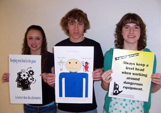 Richardson holding the safety posters they entered in the Computer Generated
