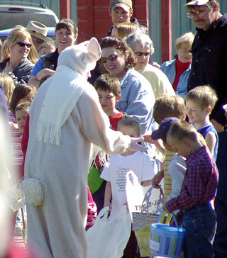 section of the hunt. In the bottom photo, the Easter Bunny makes an appearance.