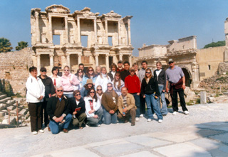 The top photo shows the group at Ephesus, Turkey. Back from left are Ingrid