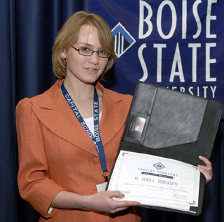 was honored on April 9 as a Boise State Capital Scholar and received a
