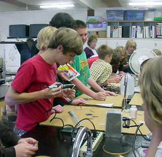 the stained glass pieces they want to use. In the lower photo Randy Becker