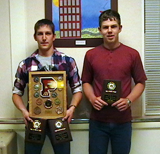 The Cottonwood Wrestling Team held a banquet on April 25th. Tony Duman had the most near falls and he tied with Jake for most pins. Jake Wimer had the most reversals. Tyrell Langston had the most take downs and most escapes. The teams overall medal count was 13. Shown in the top photo are Tony Duman with a plaque with his medals over his 4 years of wrestling and his most outstanding wrestler plaque and Jake Wimer with his Most Improved plaque. In the lower photo is the entire team. In front are Chance Ratcliff and Tyrell Langston. Back from left are coach Steve Lamont, Brandon Poxleitner, Tony Duman, Jake Wimer, Ronnie Chandler and coach Dan Altman. PHS BASEBALL May 11-12-District continues at Kendrick 18-19-State at Lewiston? |