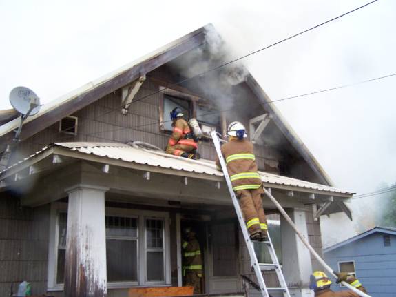 December 21, 1964 – “Discussion of the recent night fire at the Chris Jensen house was held. Temperatures were below -30° F and it was felt that all firemen did the best job possible under the existing conditions. Motion was made by Don Hoene and seconded by Mark Tacke that Fred Behler paint two rubber coats with luminous paint for the Chief and Assist. Chief for better visibility of these two men at night fires. Motion carried.” The following photograph is of Cottonwood Volunteer Firemen fighting the fire at the Didier apartment building in October, 2006. ![]() |